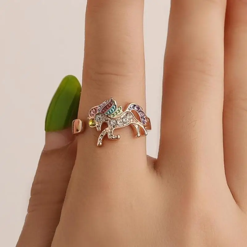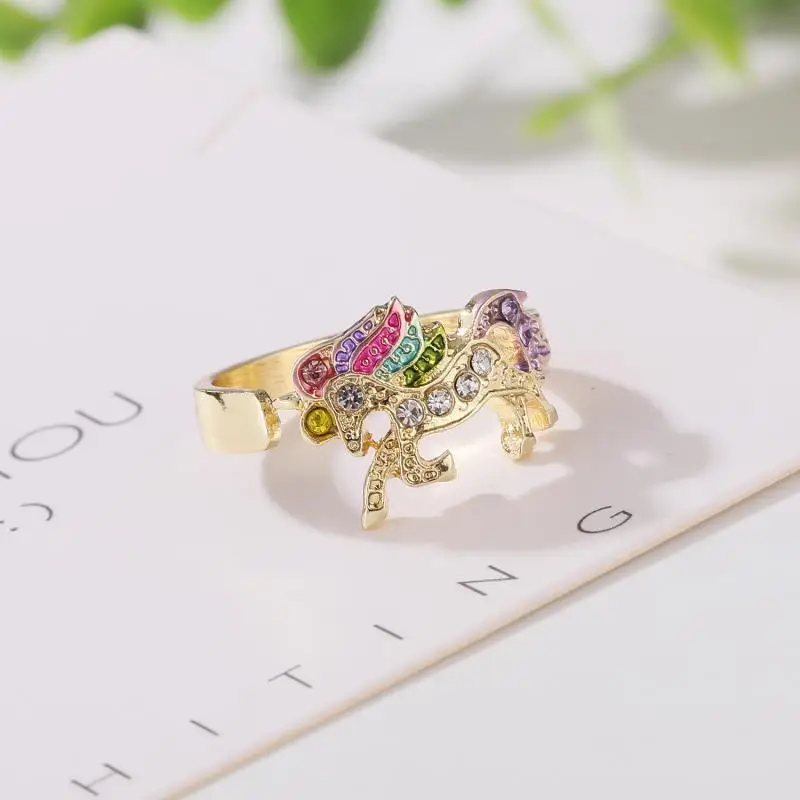 Женское кольцо с регулируемым размером, модное разноцветное кольцо с единорогом, модные украшения для вечеринок, простой очаровательный подарок, золотистого цвета отверстие