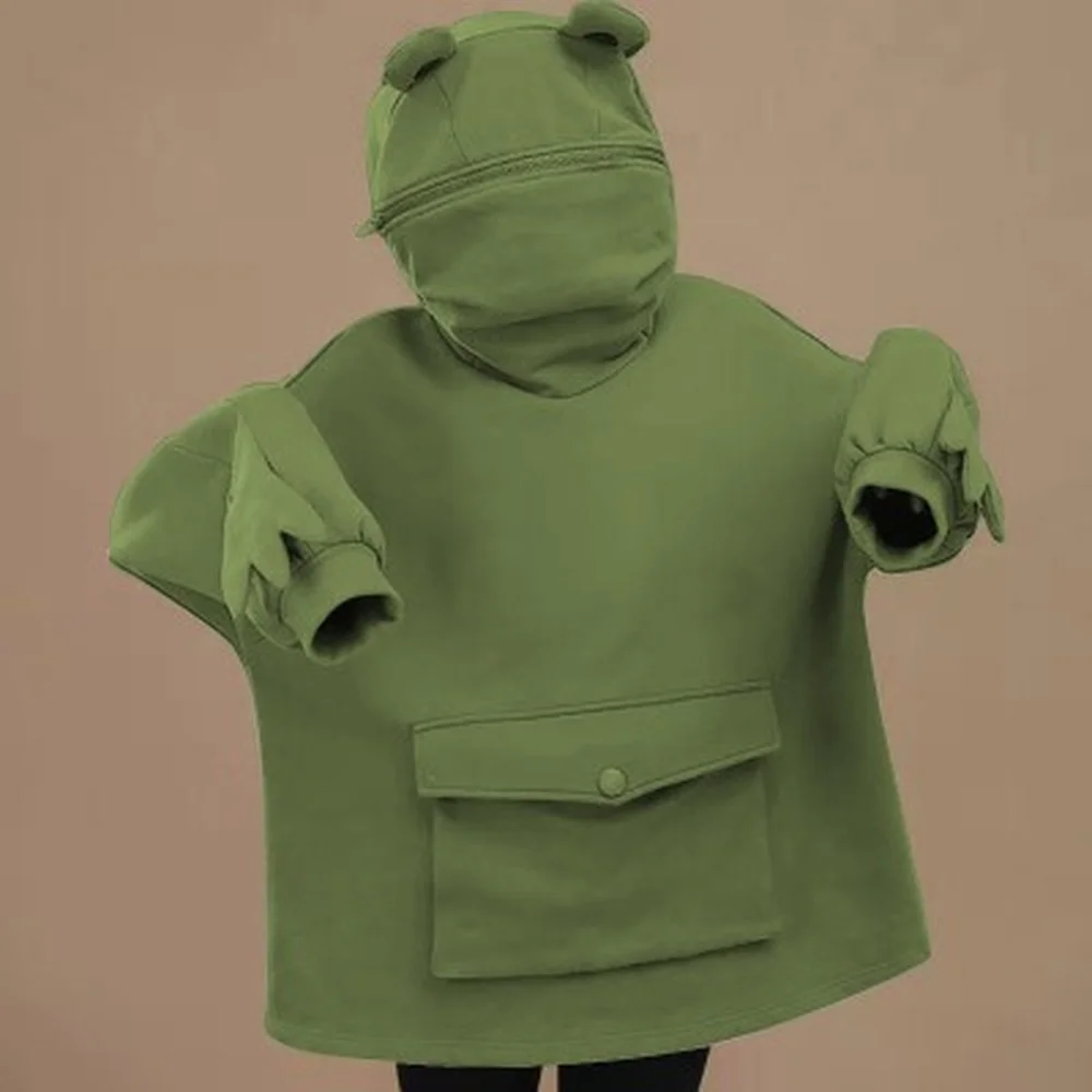 Пуловер в форме лягушки, толстовка с большими карманами, Осень-зима...