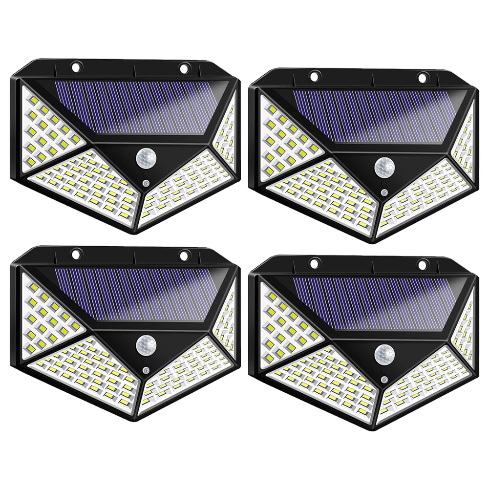 Настенный светильник на солнечной батарее, водонепроницаемая лампа с датчиком движения, уличное украшение для сада, 4 шт., 100 светодиодов