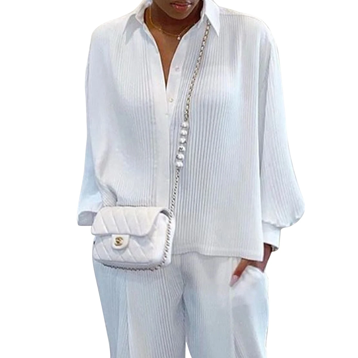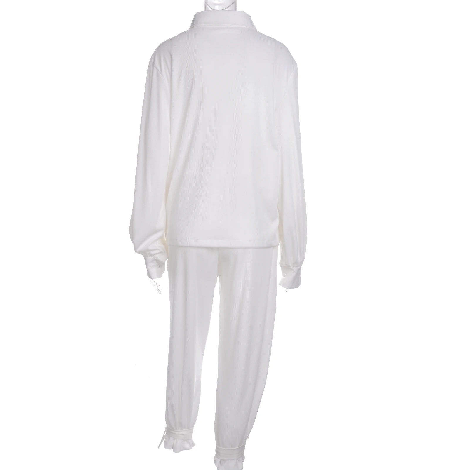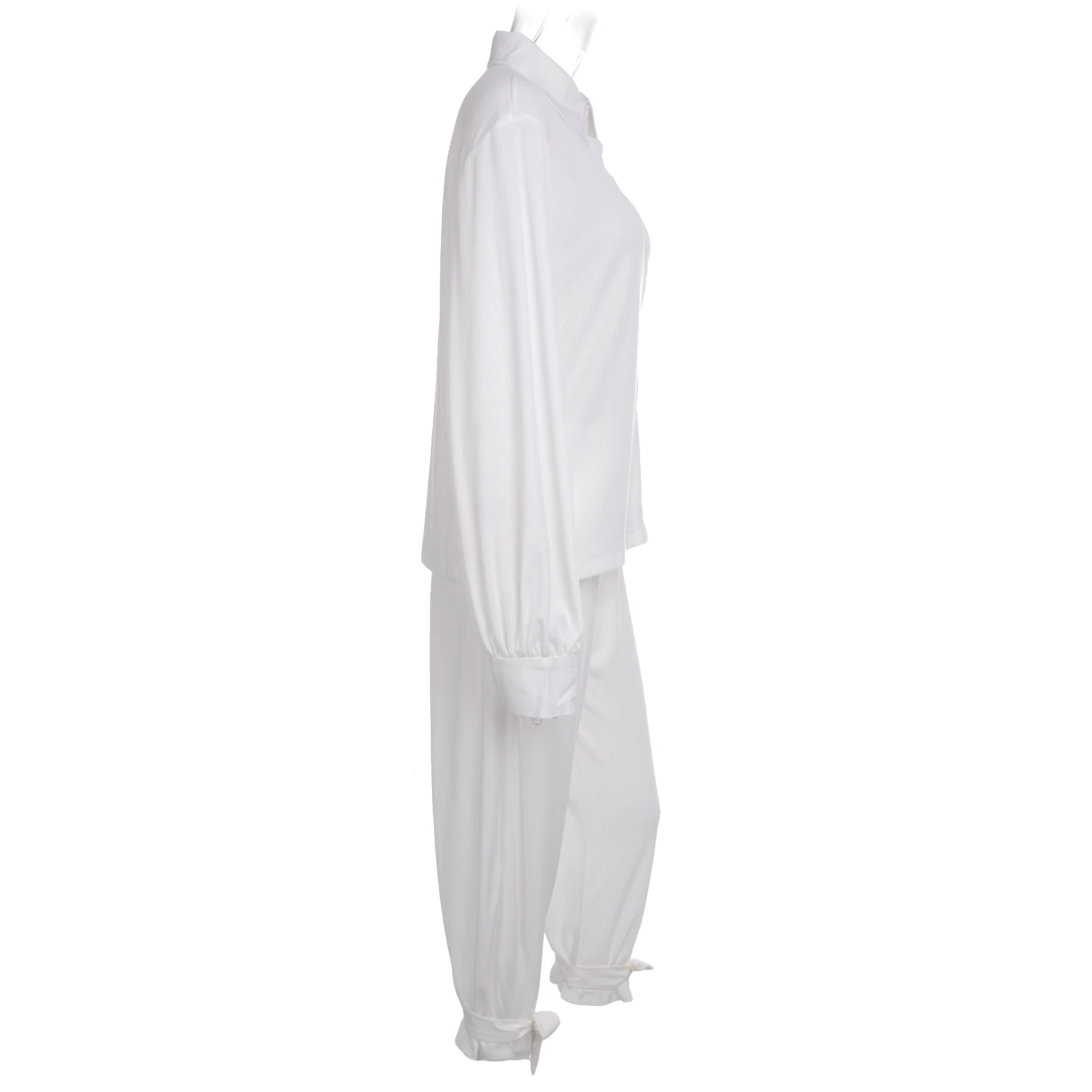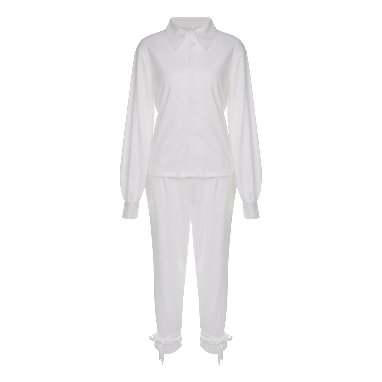 Комплект из 2 предметов, женская осенняя одежда, Однотонная рубашка в рубчик с отворотом и длинными рукавами + длинные штаны, костюм