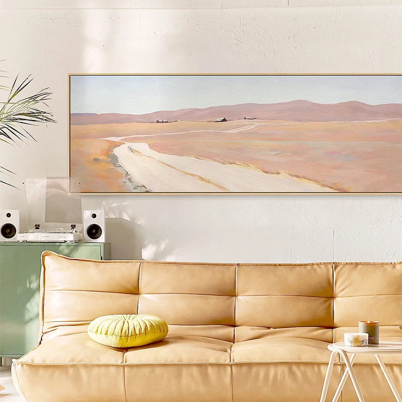 Абстрактный пейзаж, настенная живопись на холсте, розовый небесно-г...