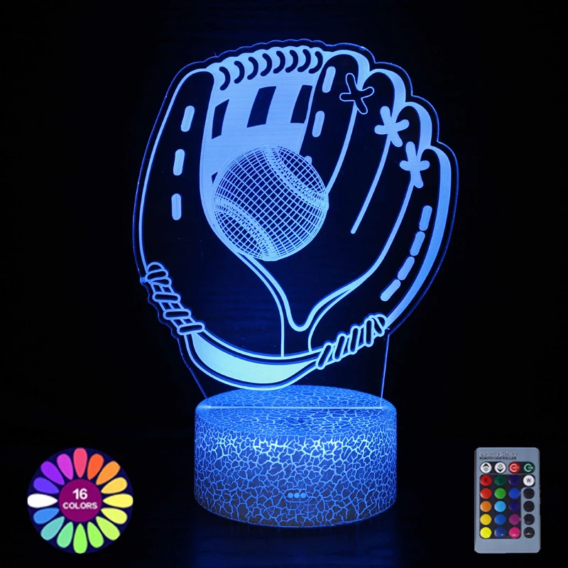 Акриловая настольная лампа, 3D иллюзия, бейсболка, фигурка для домашнего декора, сенсорный пульт дистанционного управления светодиодный светодиодные светильники, праздничный подарок, ночники