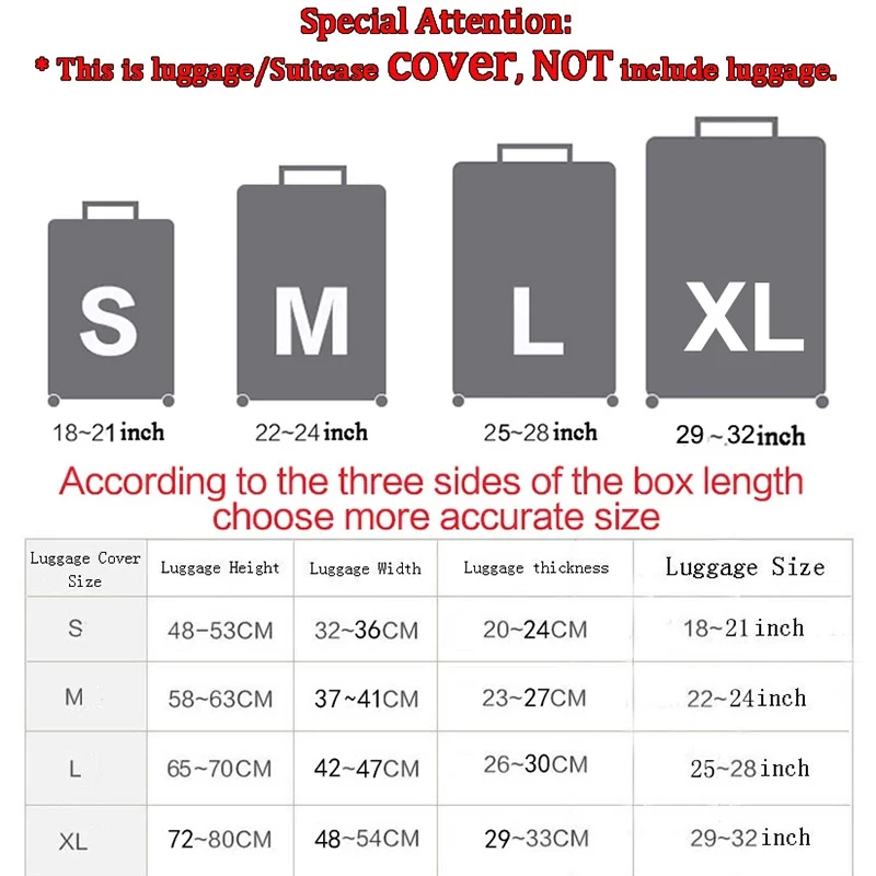 Пожалуйста, обратите внимание: этот товар-просто чехол, а не чемодан.Он используется для защиты чемодана и предотвращения царапин и загрязнения чемодана. Тонкая работа и качественная ткань делают его качественным продуктом. Можно мыть водой, не выцветать и использовать повторно. Богатые узоры позволяют определить свой багаж с первого взгляда и приносить удобство вашим путешествиям.