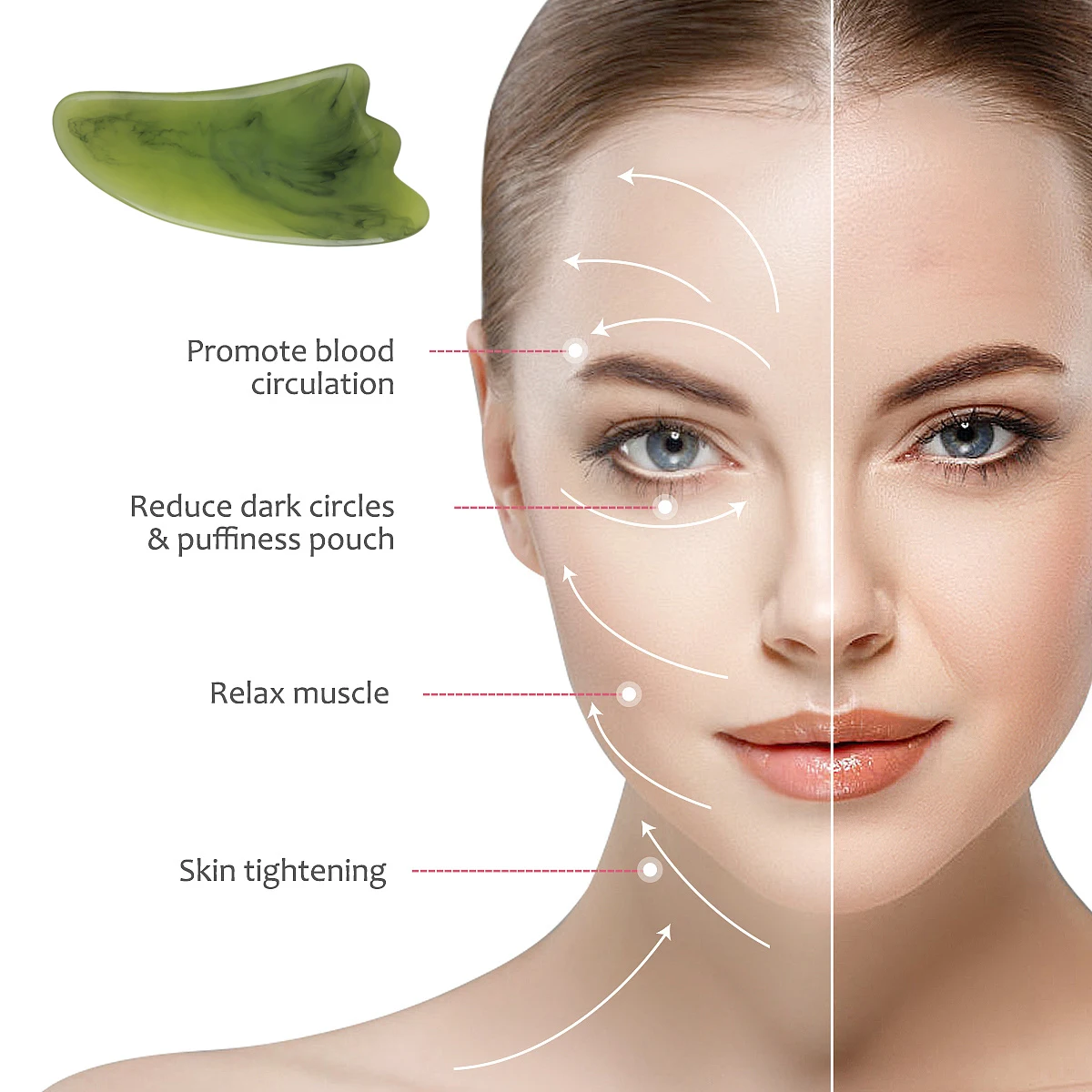 Гуаша является традиционной профилактикой заболеваний и лечением естественной лечебной терапии без наркотиков. Стимулируя связанные с телом меридианы, точки акупунктуры, гуаша может улучшить кровообращение, очистить меридианы, убрать лишнее тепло и токсины, питать и укреплять ваш желудок, таким образом, улучшается иммунная функция организма. Наш соскабливающая доска состоит из натуральной смолы, это холодный и лечебный дух. Смола-это натуральный продукт.