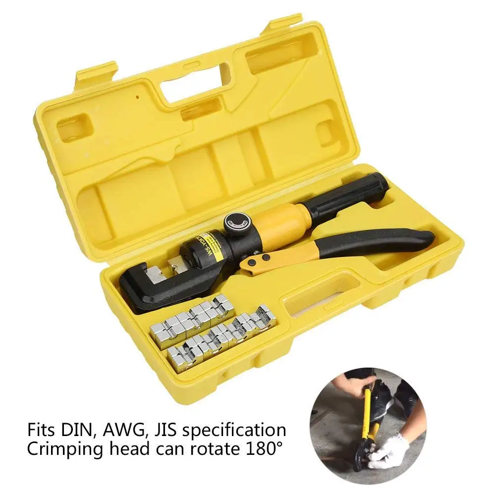 Особенности:1. Обжимной инструмент подходит для спецификации DIN, AWG, JIS.2. Когда высокое и низкое давление быстрых двух концов достигается, появится защитное устройство «клик».3. Один человек может работать на большой высоте, экономя время и силы.4. Насос спроектирован в одной части, и головка может поворачиваться на 180 ° при нажатии.