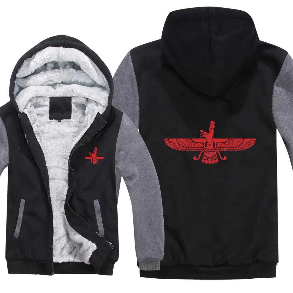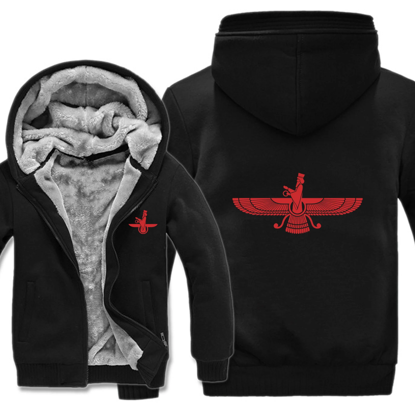 Мужская Флисовая Толстовка с капюшоном и молнией, с символами Ирана и Персии