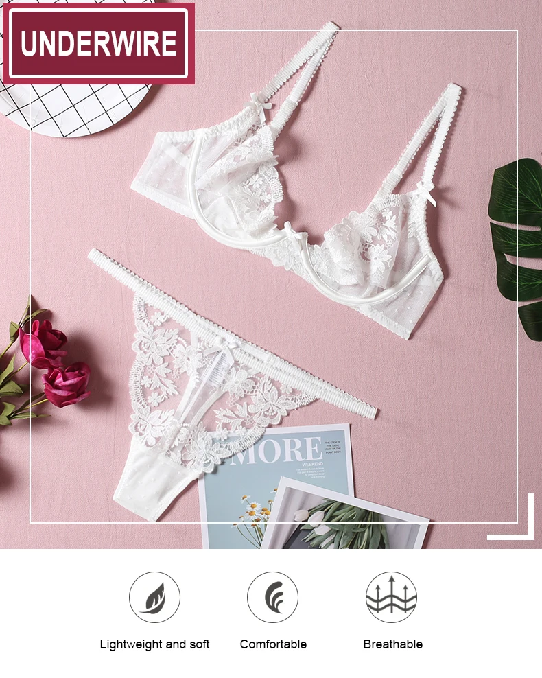 Женский комплект нижнего белья с цветочной вышивкой, тонкий прозрач...