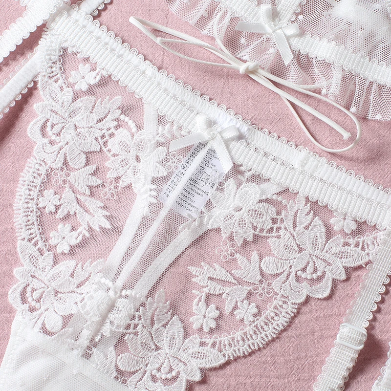 Комплект женского прозрачного кружевного нижнего белья с вышивкой и...