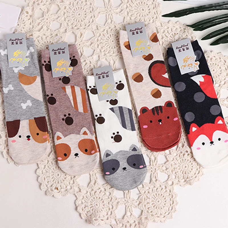 Носки женские короткие SP CITY, из носки с милыми животными хлопка...