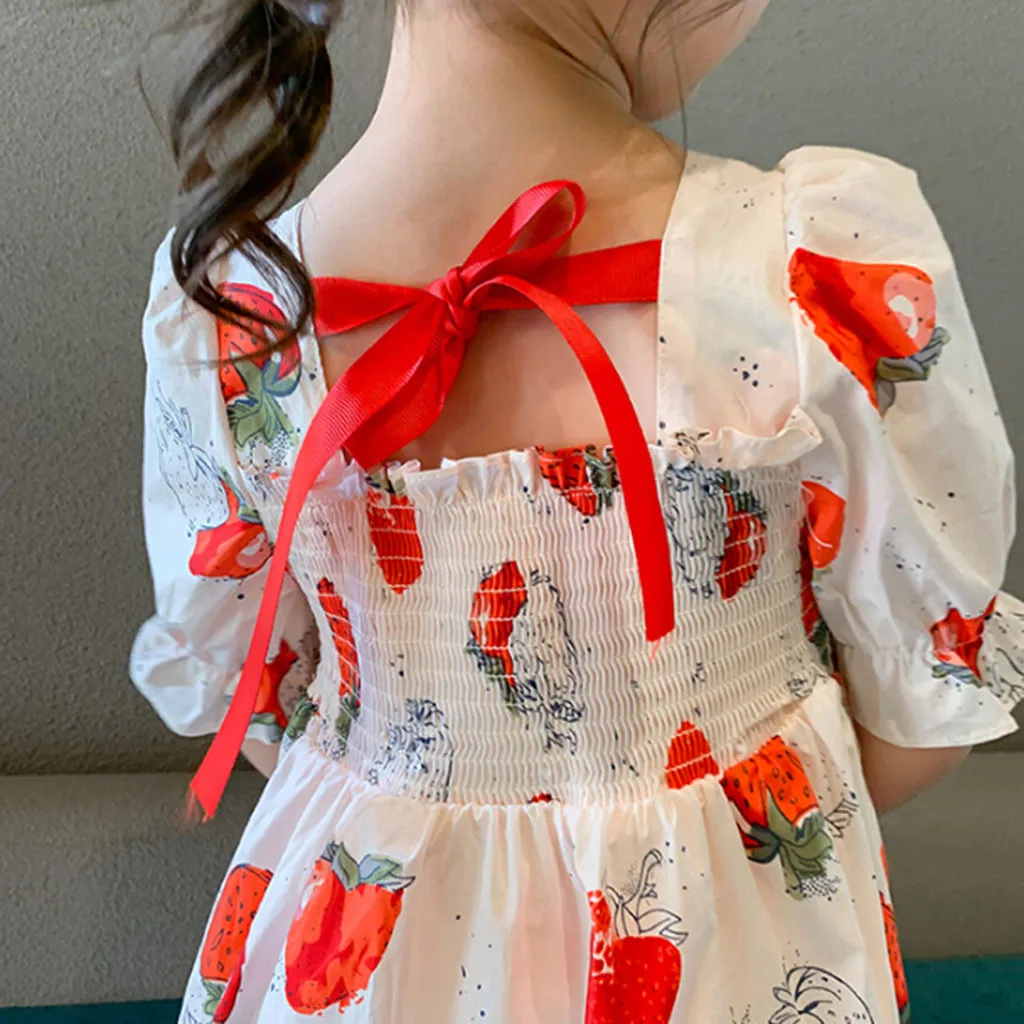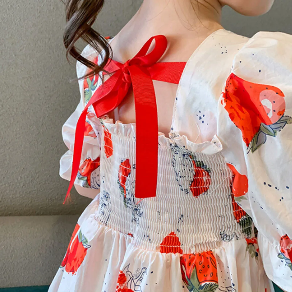 Летнее платье для маленьких девочек, платье с рюшами и клубничкой, платья принцессы, одежда для маленьких девочек, Детский костюм, новинка 2021