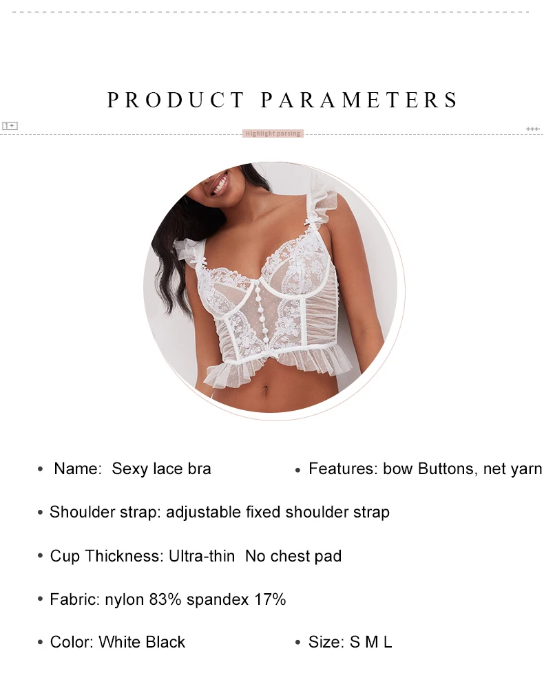 Нижнее белье/бюстгальтер «на косточках», Кружевная сетчатая ткань с пуговицами.