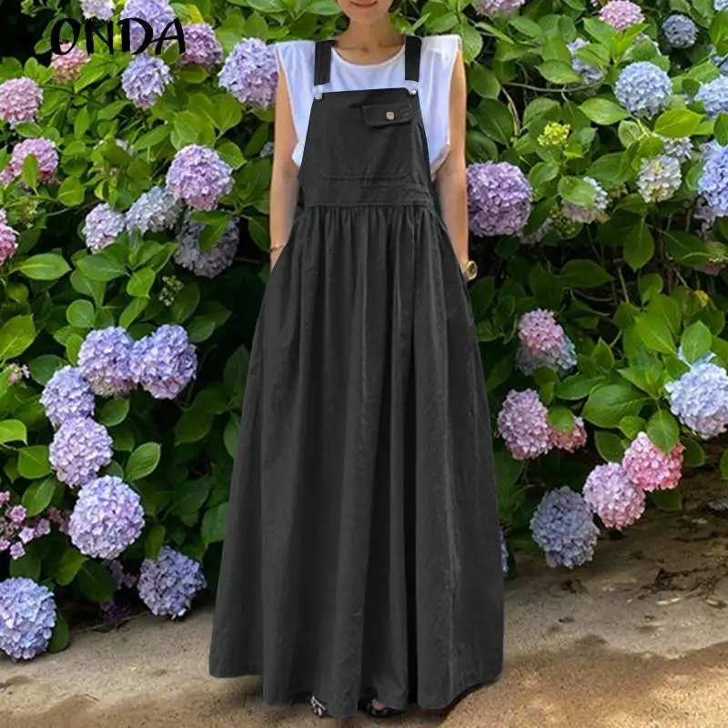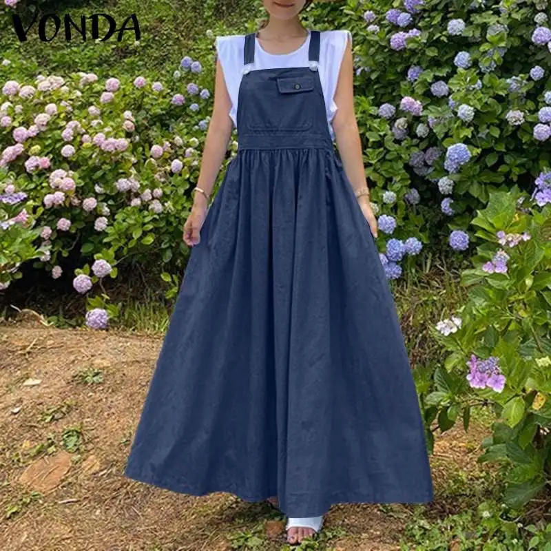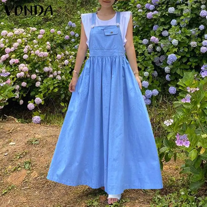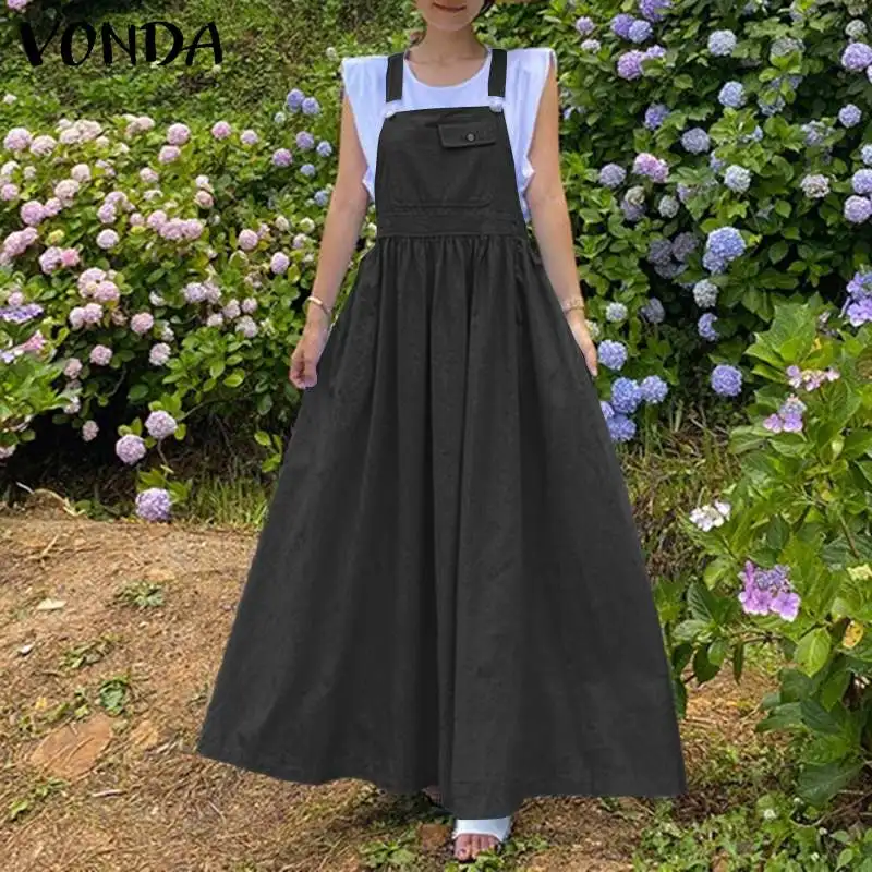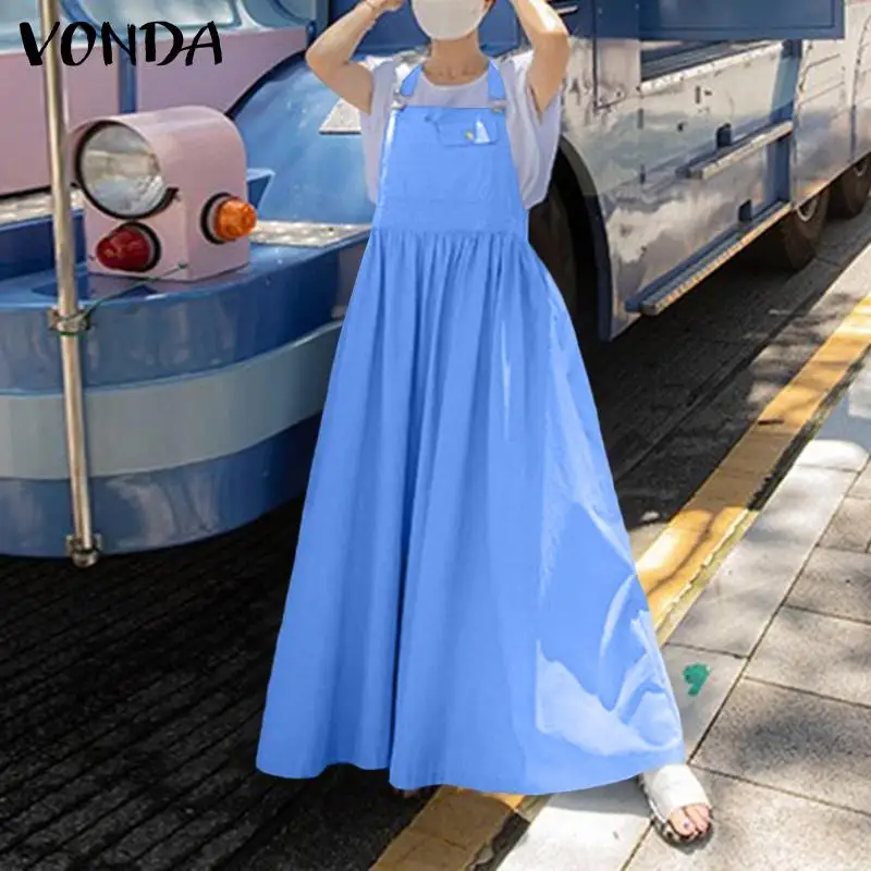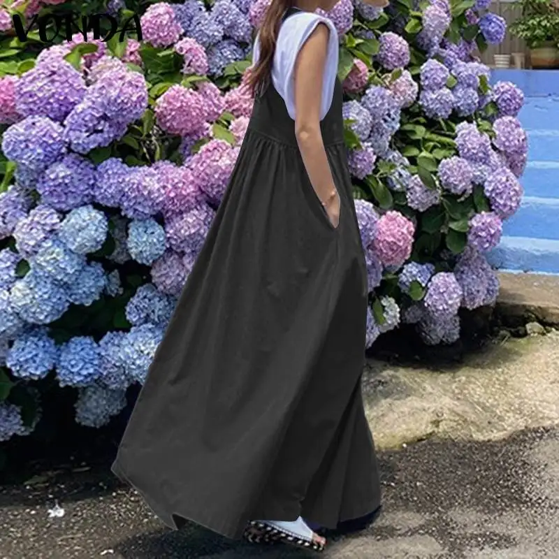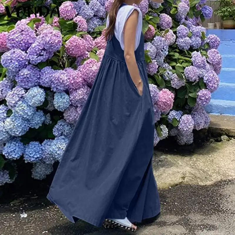 Летние однотонные плиссированные платья без рукавов с карманами VONDA 2021, женские повседневные однотонные длинные блестящие платья