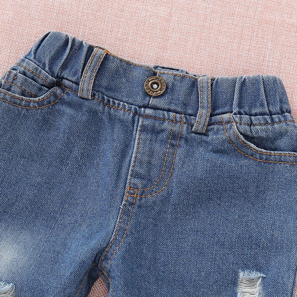 Комплекты одежды для новорожденных девочек, укороченный топ с цветочным принтом + джинсовые штаны с дырками, комплект одежды для маленьких девочек