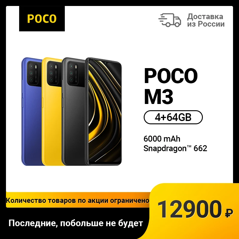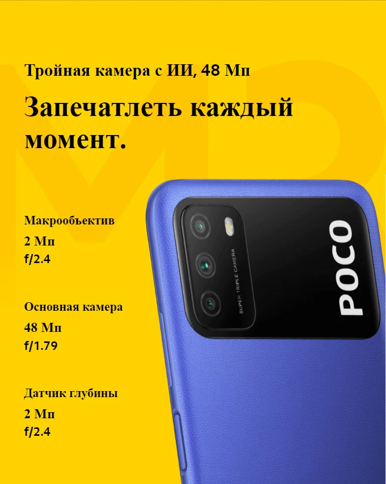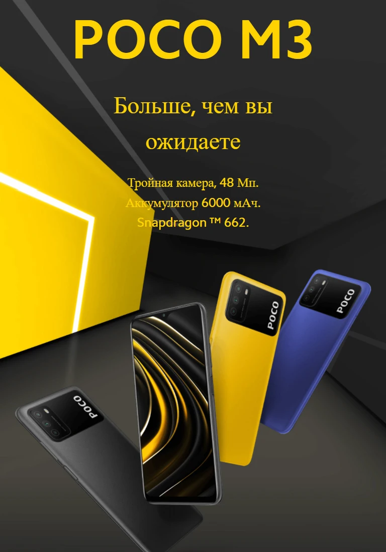 Официальная гарантия Смартфон POCO M3 4+64Гб Камера 48Mп 6000 mAh
