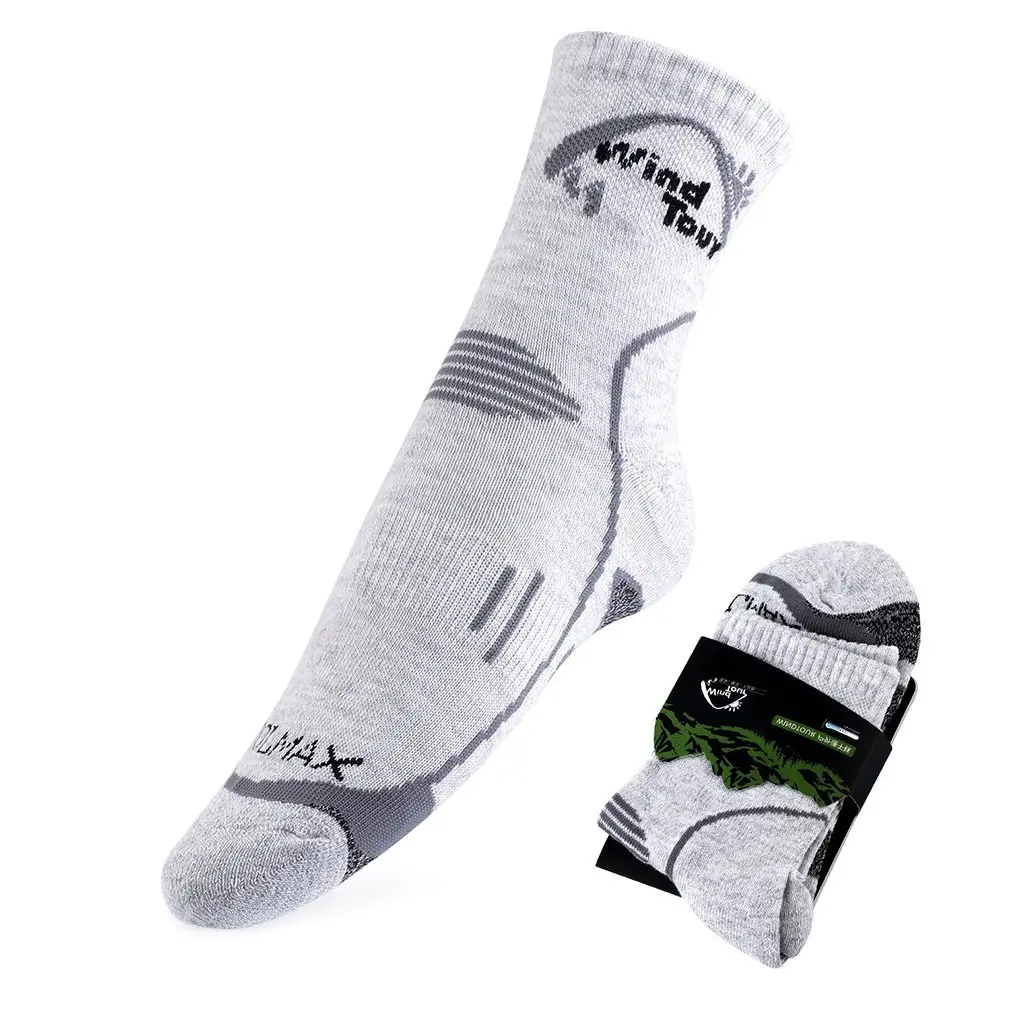 Особенности:45% полиэстер Coolmax (предназначен для впитывания влаги), 45% хлопок, 8% нейлонМягкие и толстые, сохраняя при этом большую воздухопроницаемость.Фирменный дизайн переноса влаги впитывает влагу из обуви, ускоряет испарение.Технология защиты от скольжения использует волоконную смесь, которая помогает в вытягивании обуви.Один размер подходит для большинства-хорошая эластичность. Носки с круглым вырезом и длиной до середины голени.