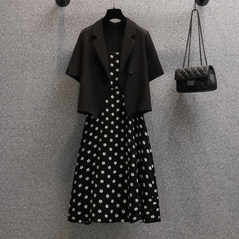 [Стоимость возврата упаковки] Женский костюм большого размера с коротким рукавом женское 2021 летнее узкое платье в иностранном стиле