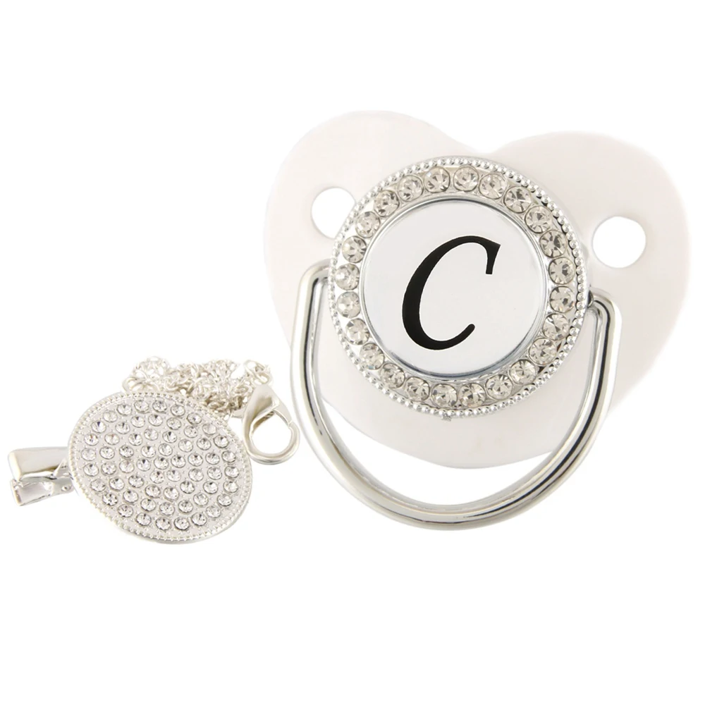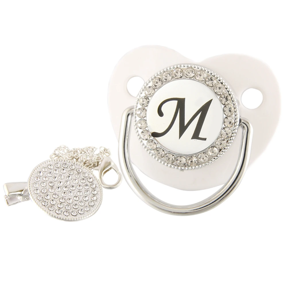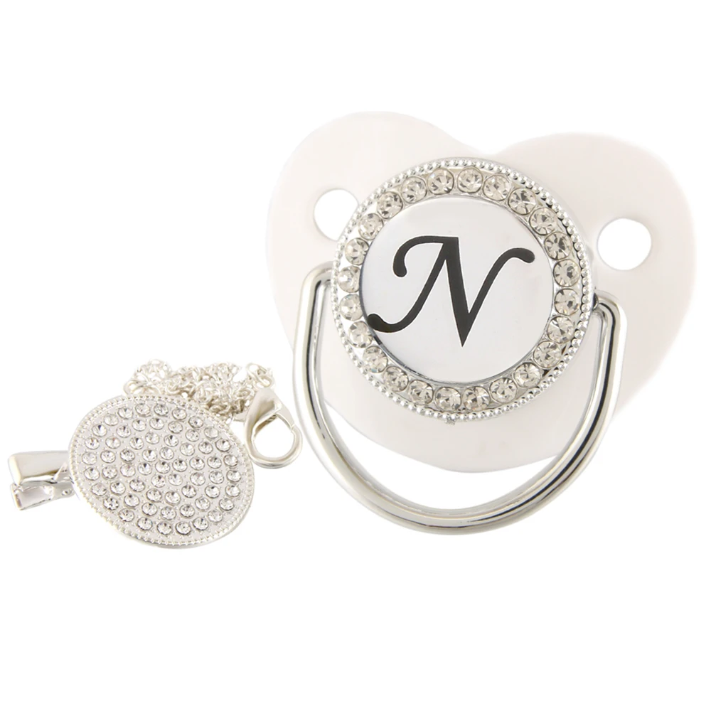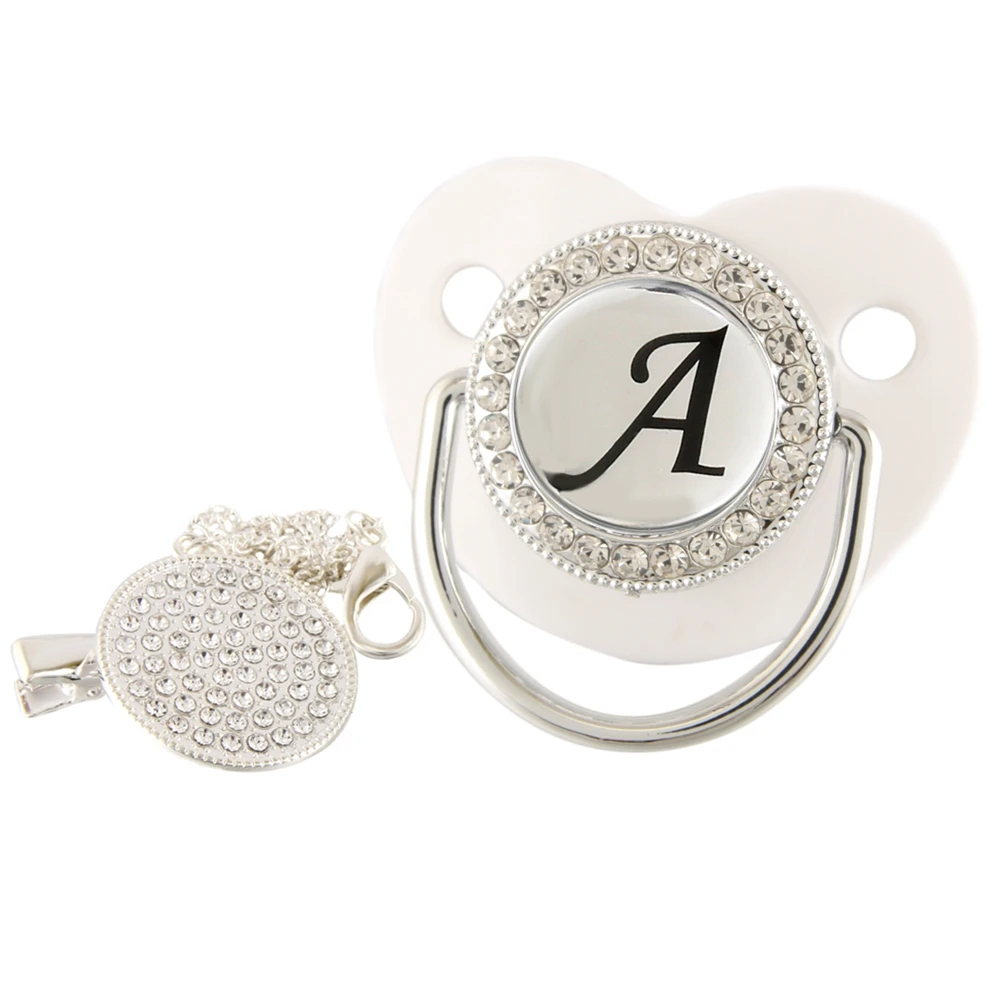 26 именных инициальных букв, белая Детская Соска с зажимом, шикарная Бриллиантовая соска, пустышка, силиконовая соска