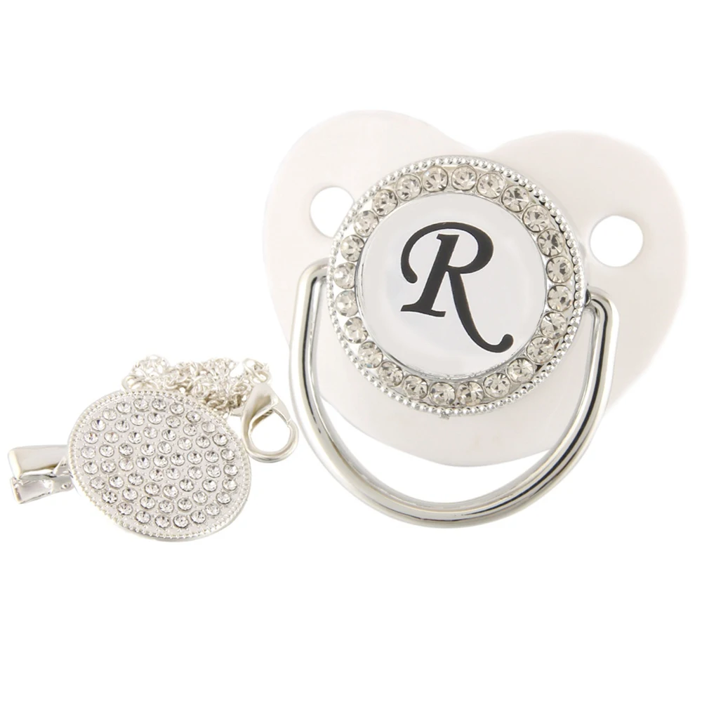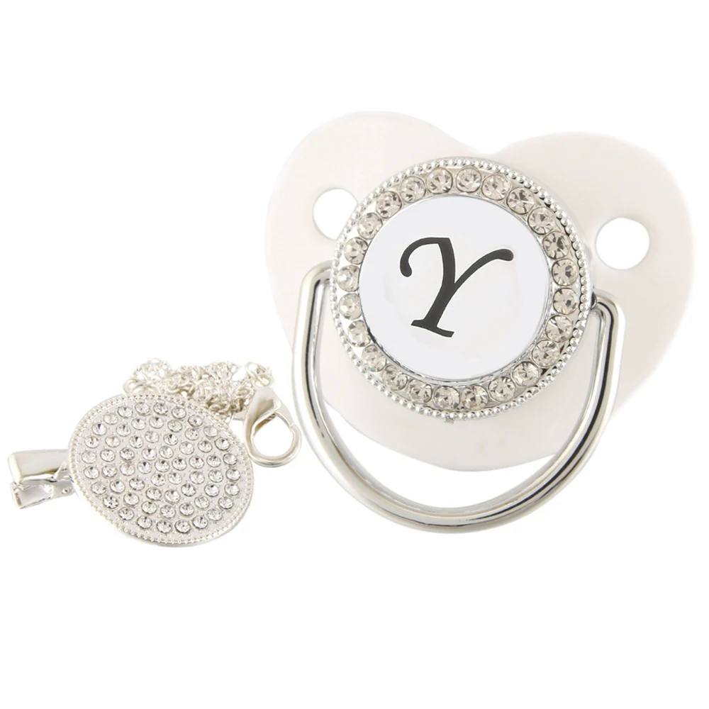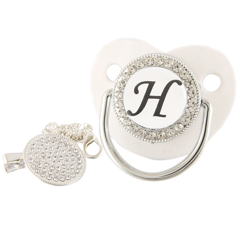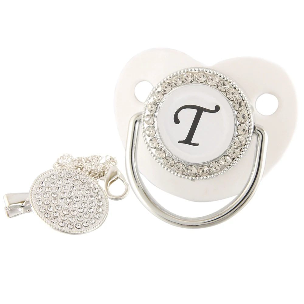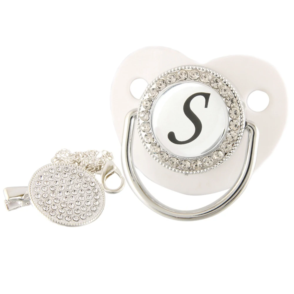 26 именных инициальных букв, белая Детская Соска с зажимом, шикарная Бриллиантовая соска, пустышка, силиконовая соска