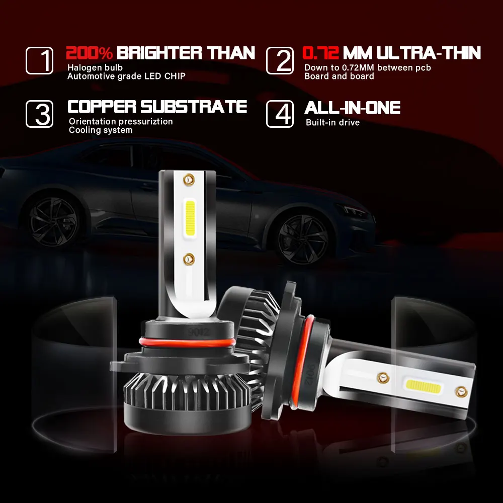 TXVSO8 Universale 9012 Ha Condotto il Faro Lampadine 80 Вт Mini Auto HIR2 Diodo Lampade per Auto 2020 12V Led Bianco luci 6000K senza ventole