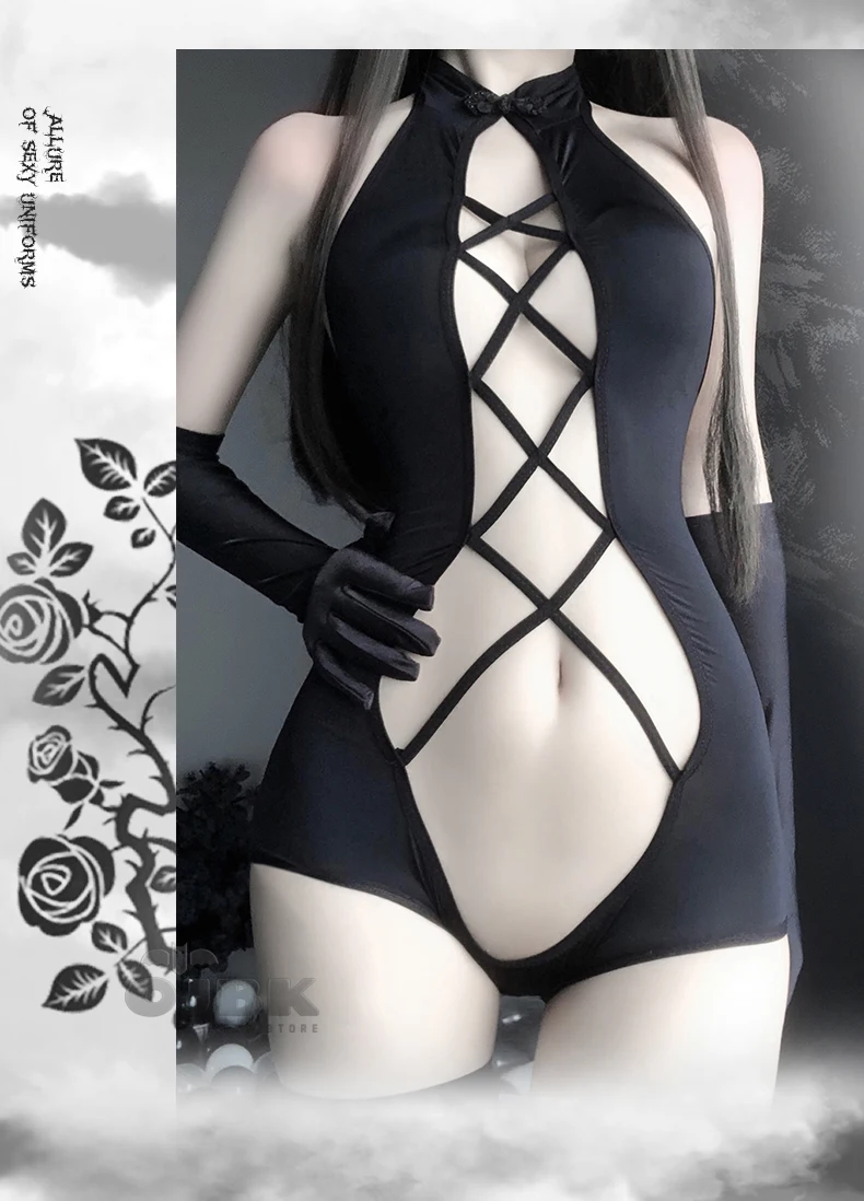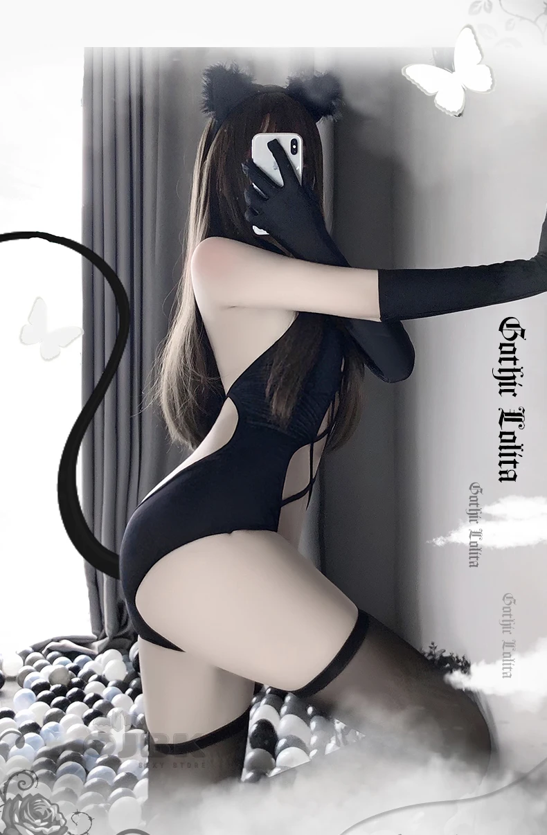 Женское сексуальное эротическое нижнее белье, боди, дьявол, костюмы для косплея, Открытый спереди Черный кот, ролевые игры, купальник, Женский комплект