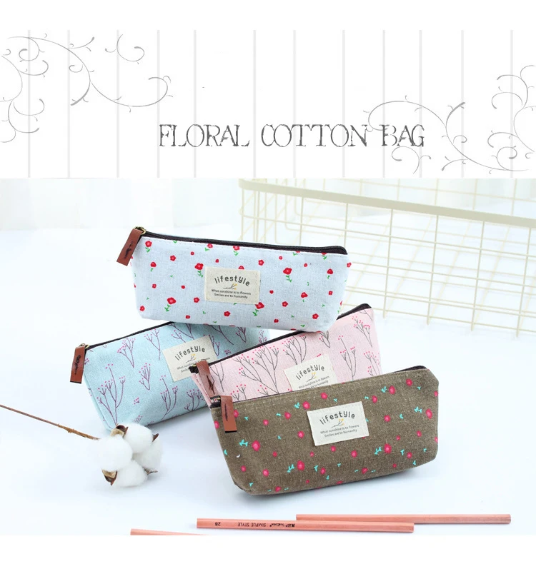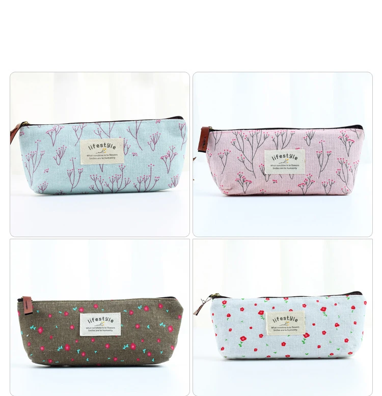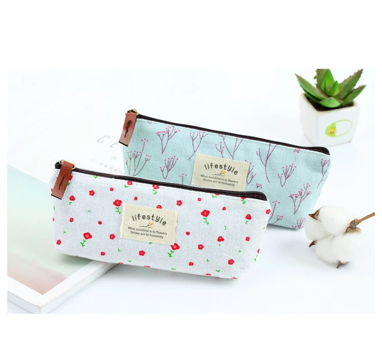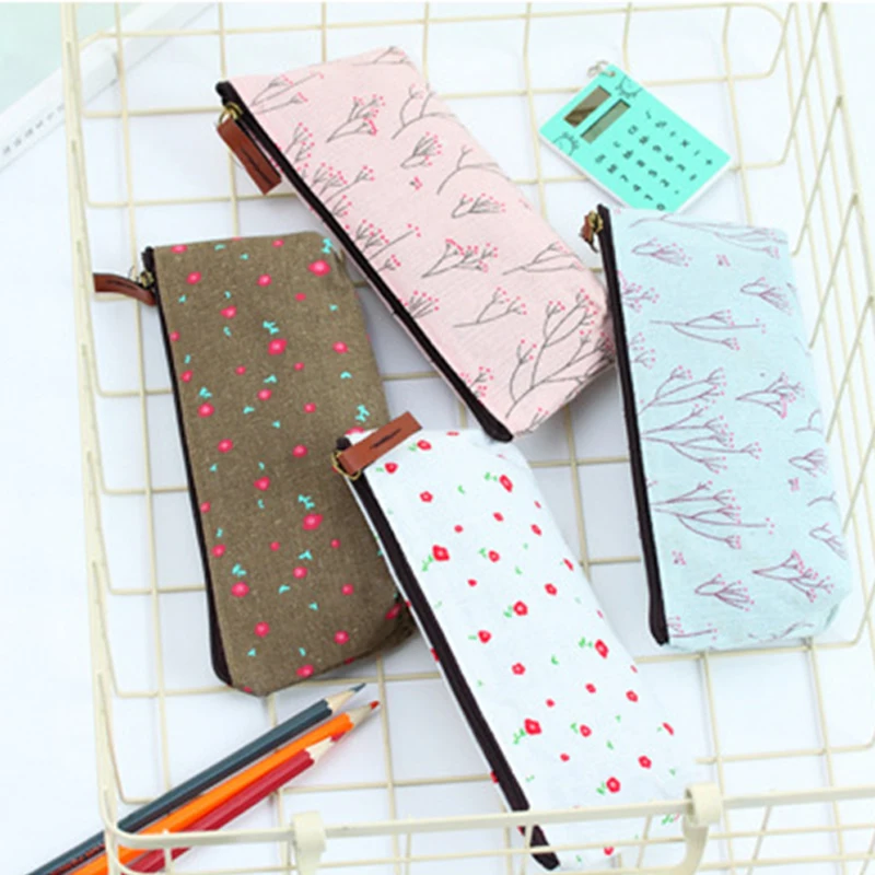 Новинка Симпатичный тканевый чехол для карандашей на молнии с цветочным рисунком милые тканевые сумки для ручек с изображением дерева школьные канцелярские принадлежности для офиса