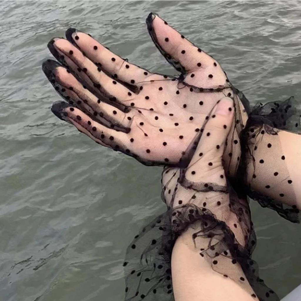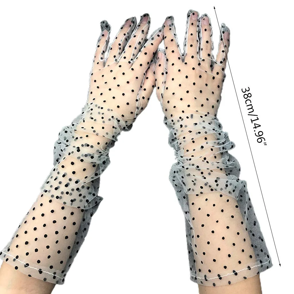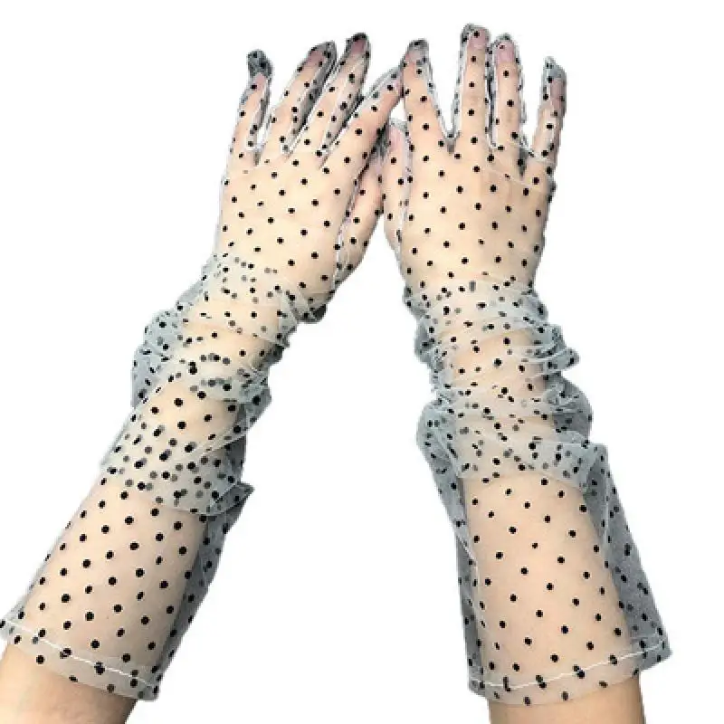 Кружевные перчатки Весна и лето новые женские солнцезащитные перчатки с бантом черные сетчатые кружевные этикетки женские перчатки 0 долл. США/Шт.