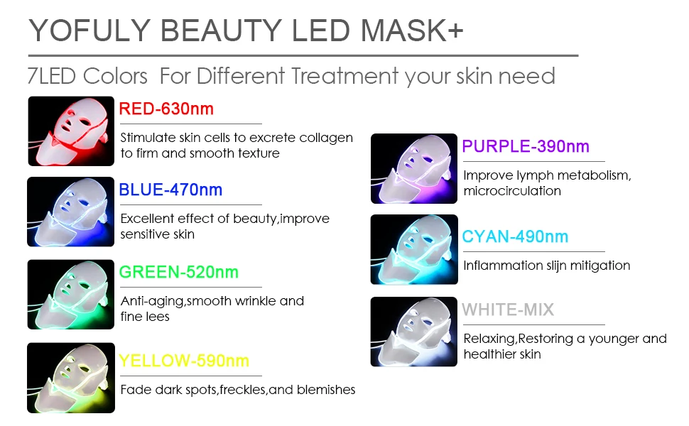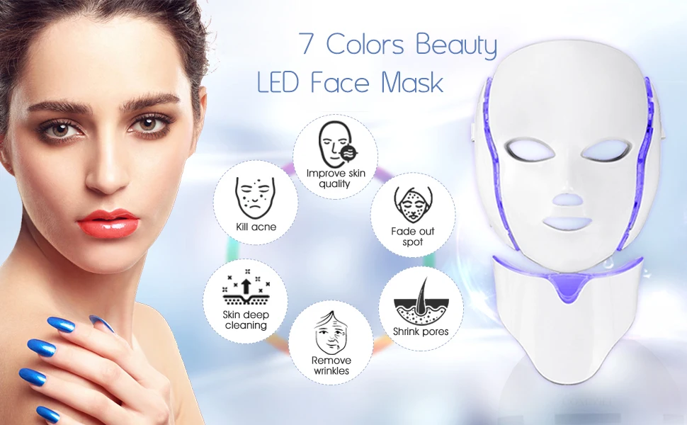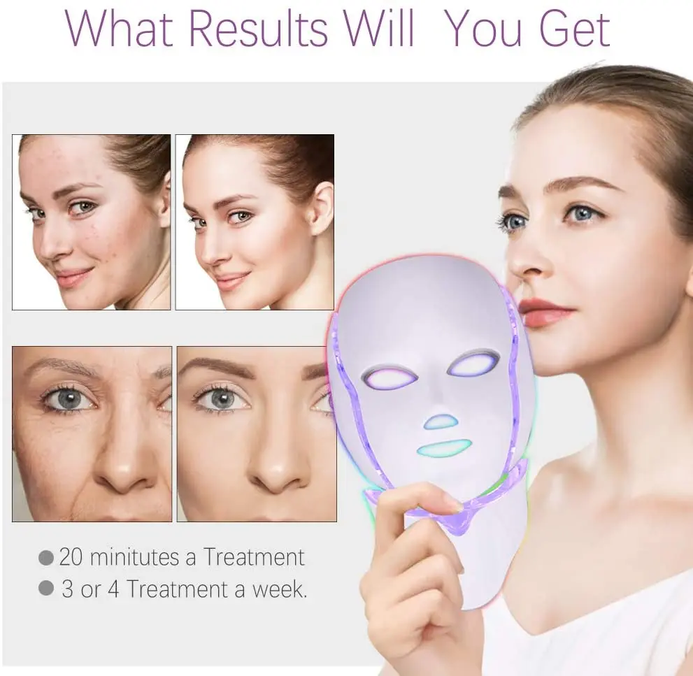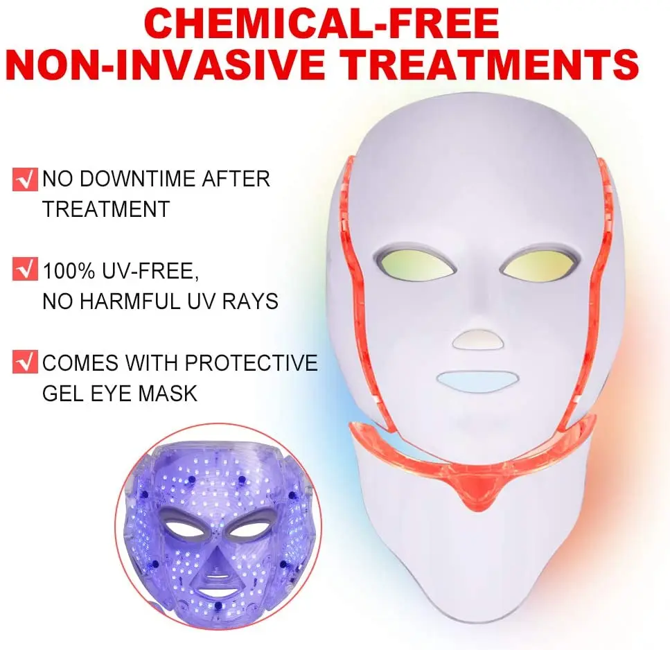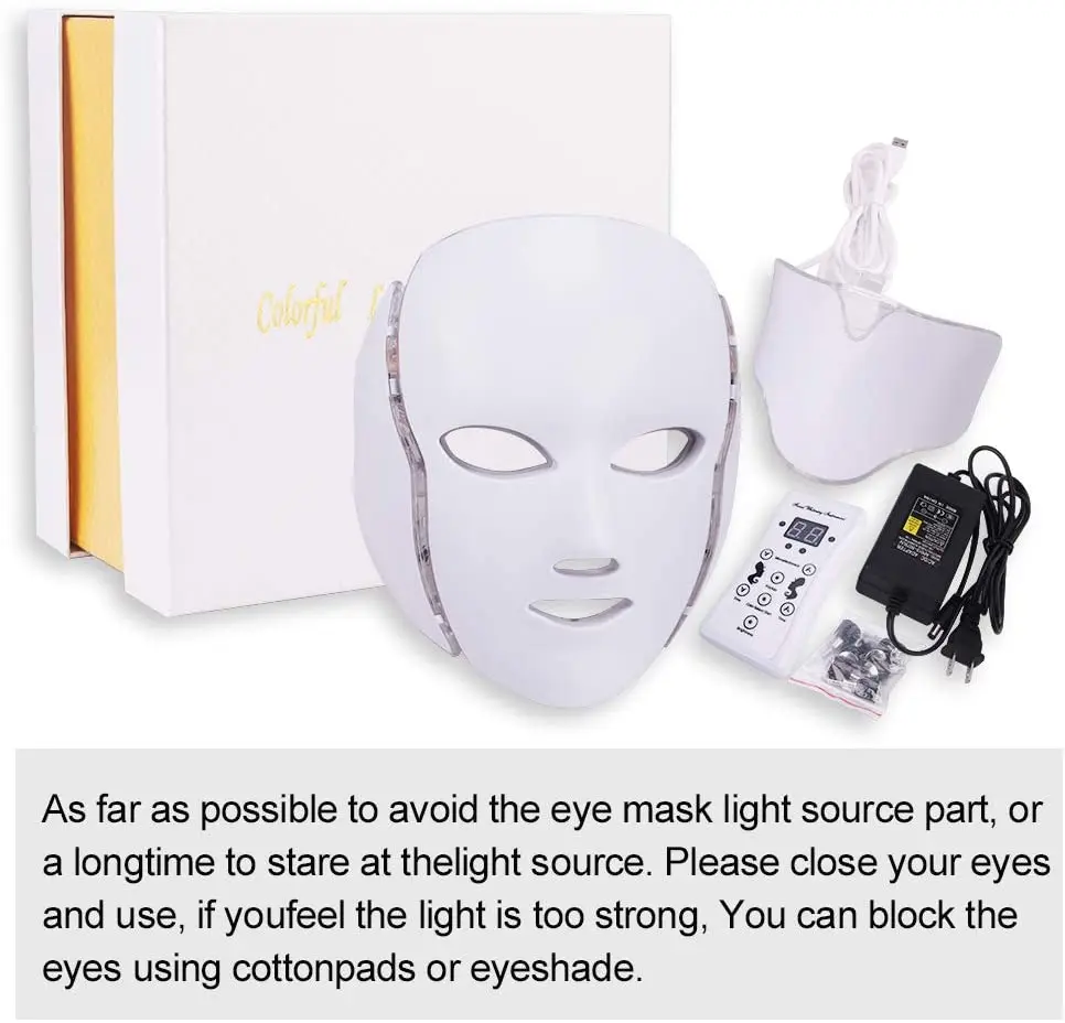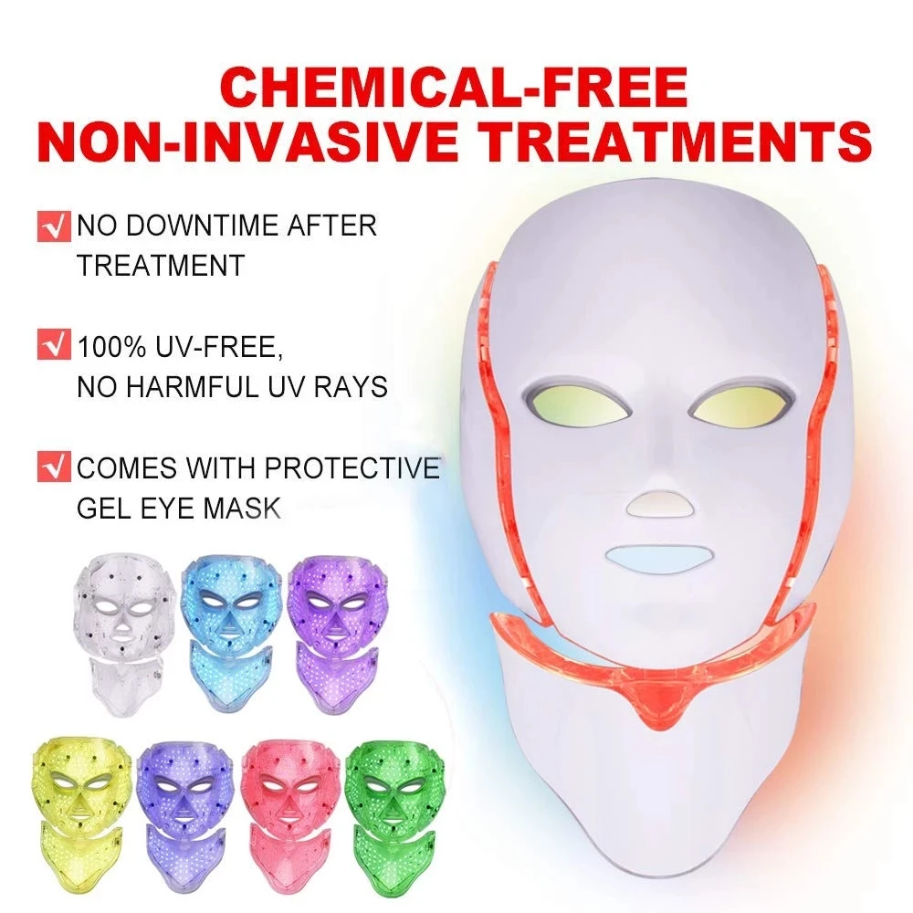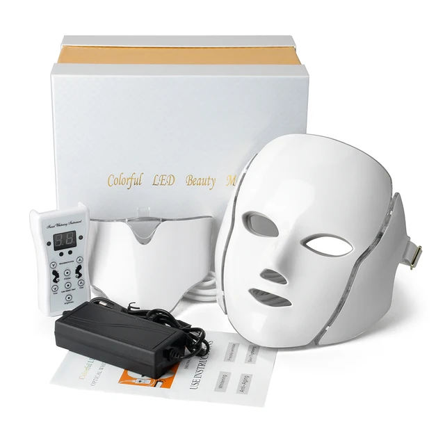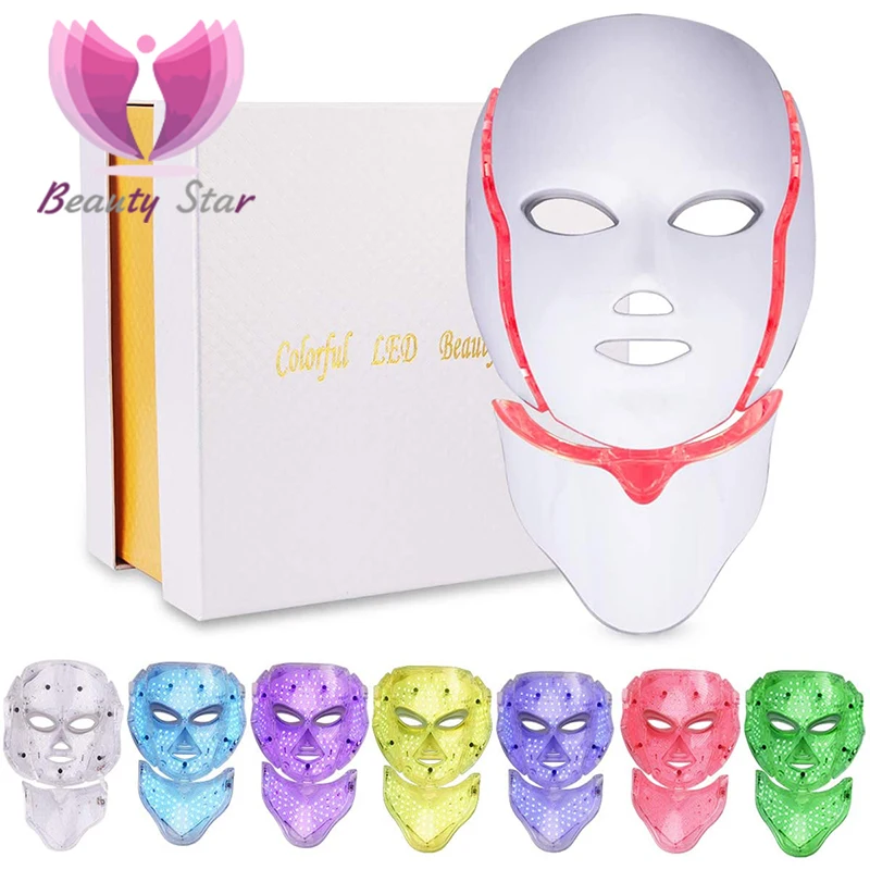 Светодиодная маска для лица, Корейская фотонная терапевтическая светильник вая маска для лица, удаление морщин и акне, для шеи, 7 цветов