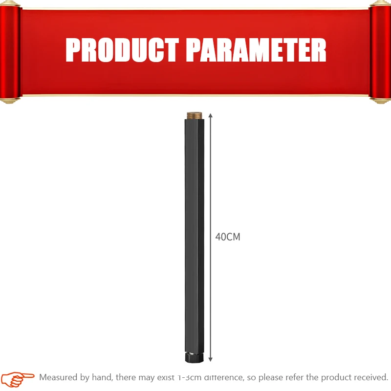Удлинитель для ванной комнаты 40 см, труба для душа, квадратный стержень для смесителя для душа, черная, белая, хромированная, Золотая