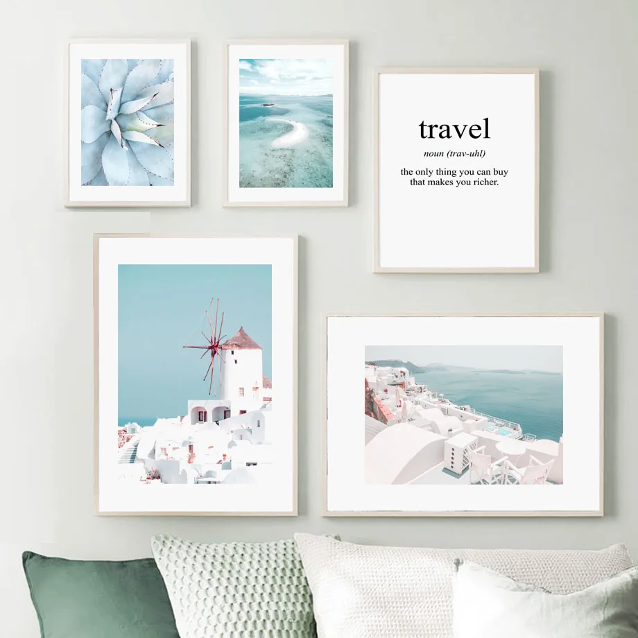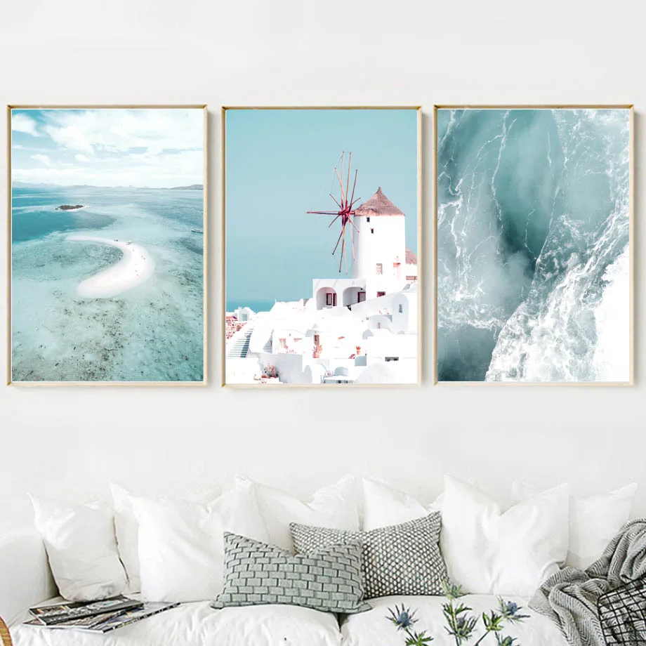 Санторини дом морской пляж кокос Агава настенная живопись холст скандинавские плакаты и принты настенные картины для декора гостиной