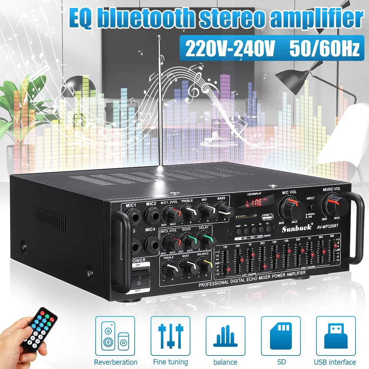 Усилитель мощности 220 В HIFI Bluetooth, профессиональный цифровой усилитель мощности, усилитель мощности для телефона, управление басами, FM, USB, SD