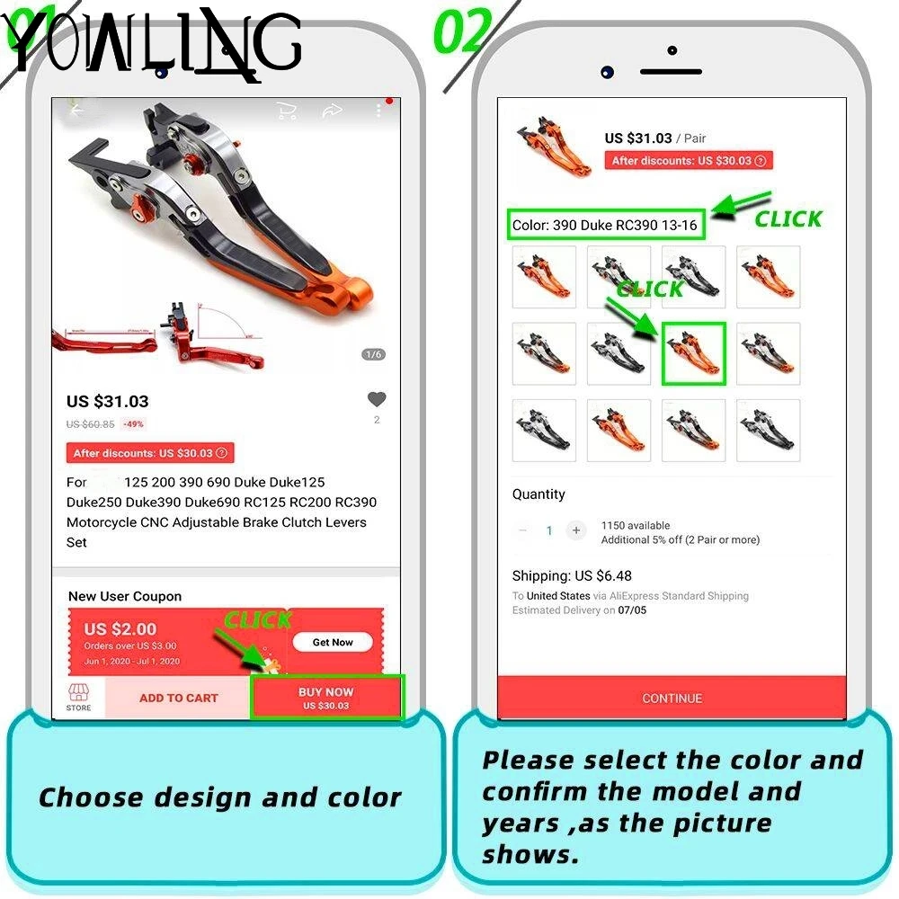 1. Пожалуйста, подтвердите модель и год вашего мотоцикла. Мы отправим рычаги так же, как и наши, если вам нужна другая модель, пожалуйста, свяжитесь с нами и сообщите нам об этом. (Пожалуйста, не сравнивайте его с вашими рычагами с нашими фотографиями, иногда изображения не такие, как на рисунке, просто покупайте в соответствии с таблицей)