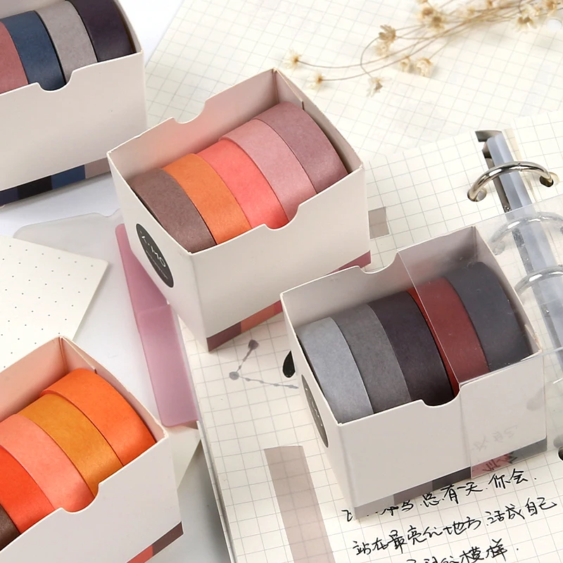 5 рулонов, креативная и простая Базовая однотонная декоративная Васи-лента, стандартная декоративная лента