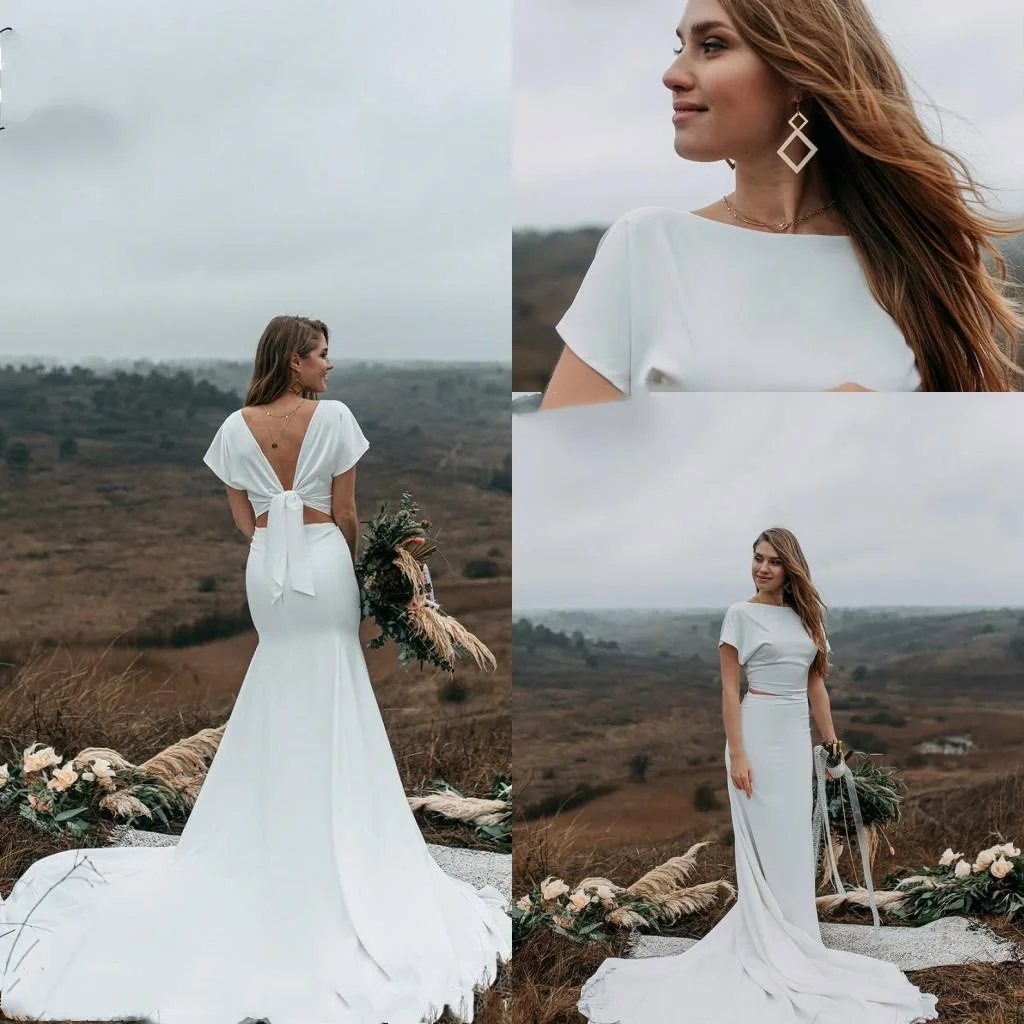 Простые Свадебные платья-русалки, свадебные платья с длинным шлейфом, пляжные платья в стиле бохо с открытой спиной, шикарный дизайн, атласные платья цвета слоновой кости для невесты, 2021