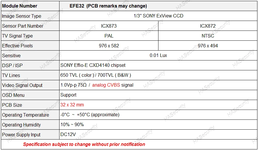 32x32 мм CVBS 12.8 "Sony STARVIS IMX307 CMOS + NVP2441 CCTV camera ...