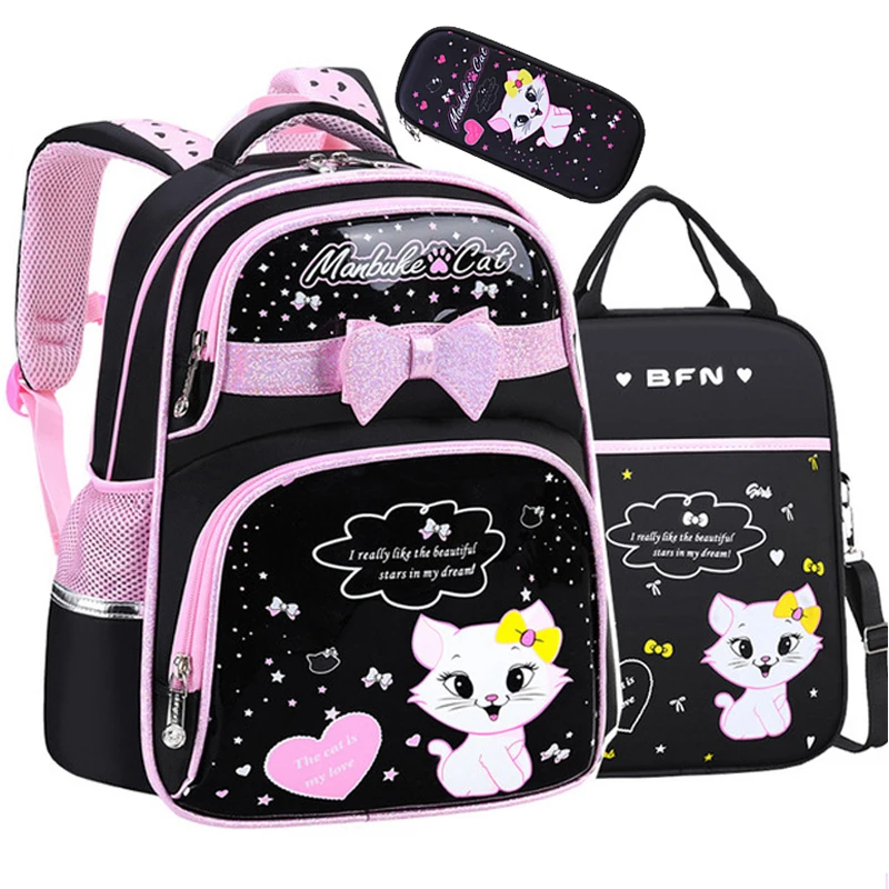 Милые школьные ранцы для девочек, модные ортопедические портфели для начальной школы с мультяшным принтом кота, рюкзаки для принцесс, детские сумки для книг
