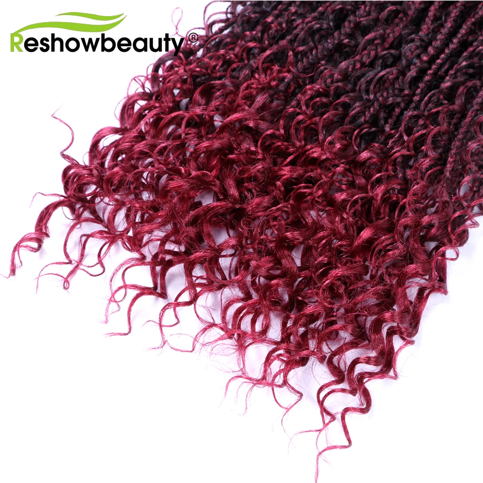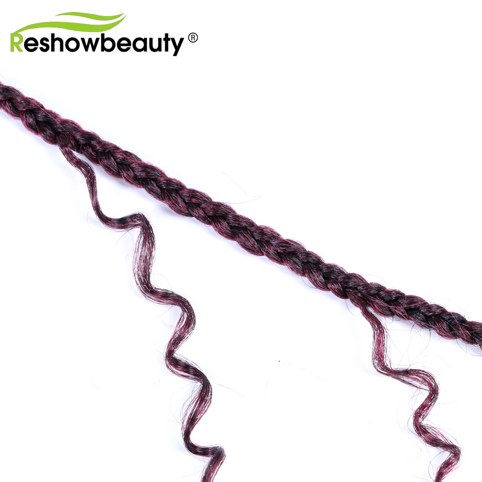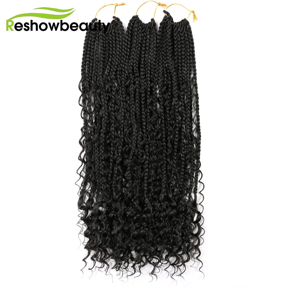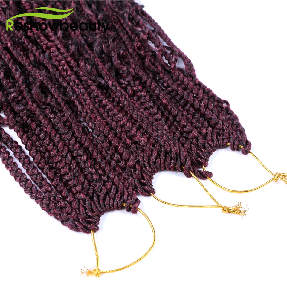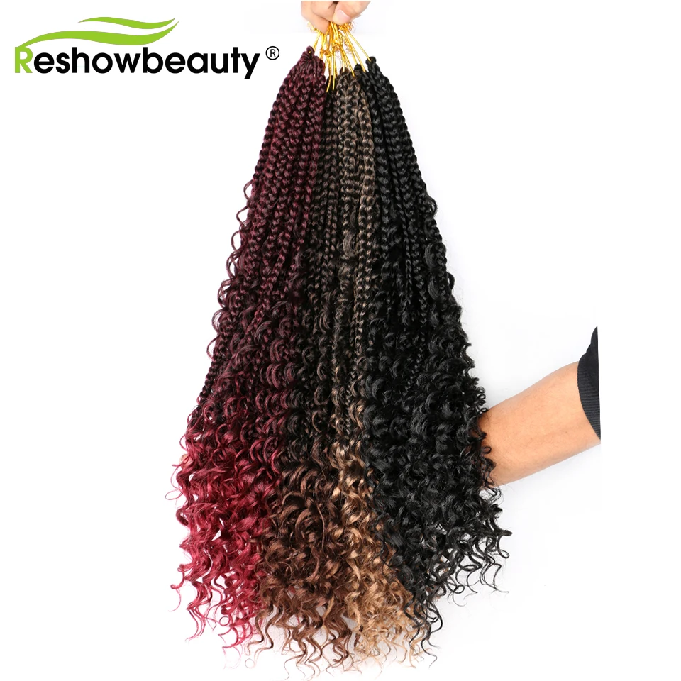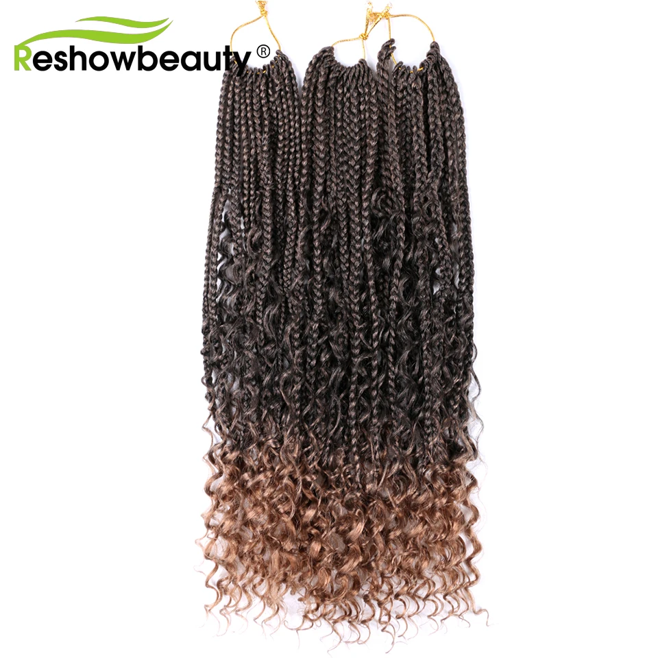 Чешские косички, вязанные крючком волосы, кудрявые концы, 18 дюймов, 70 г, синтетические косички, косички, волосы, черный блонд, 12 корней/упаковка, Reshowbeauty