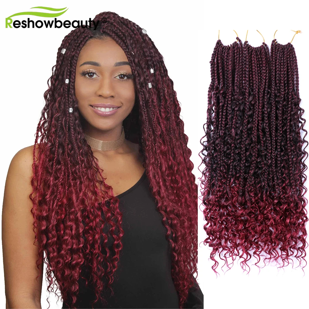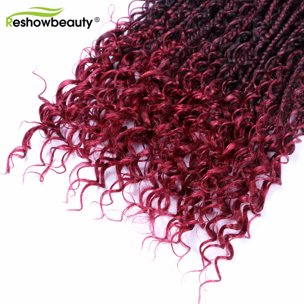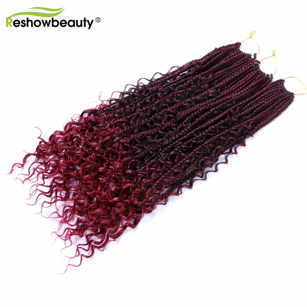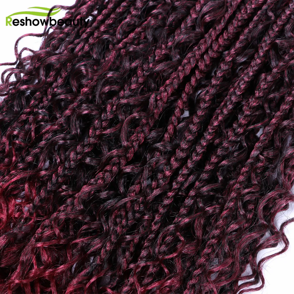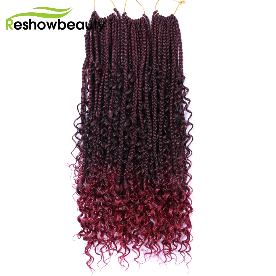 Чешские косички, вязанные крючком волосы, кудрявые концы, 18 дюймов, 70 г, синтетические косички, косички, волосы, черный блонд, 12 корней/упаковка, Reshowbeauty
