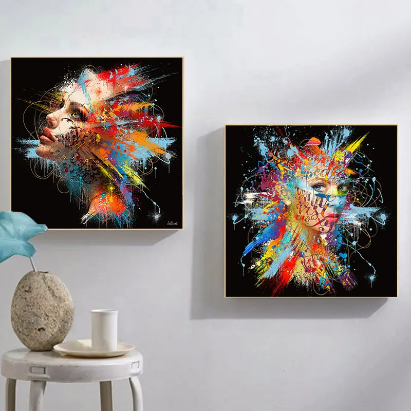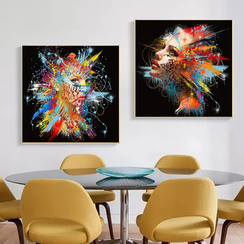 Красочные граффити искусство абстрактная Женская Картина на холсте уличная настенная фотография в скандинавском стиле для гостиной Декор