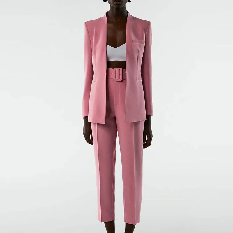 Женский костюм с длинными рукавами Za, розовая офисная одежда, элегантный шикарный костюм