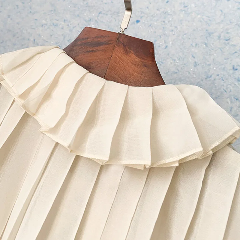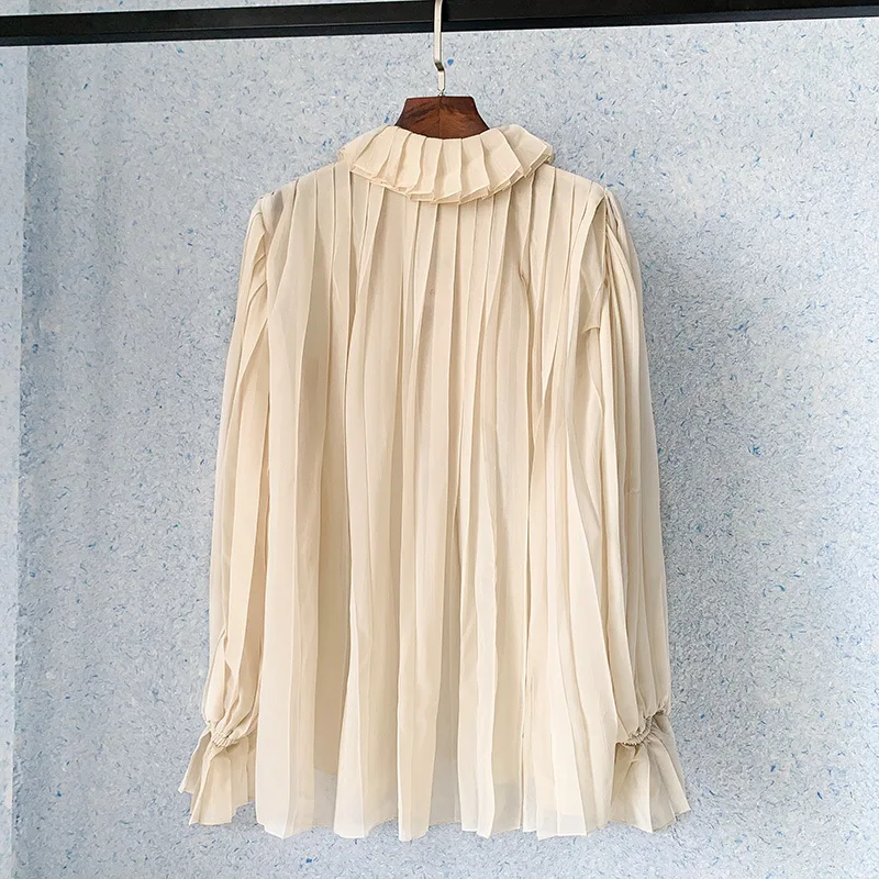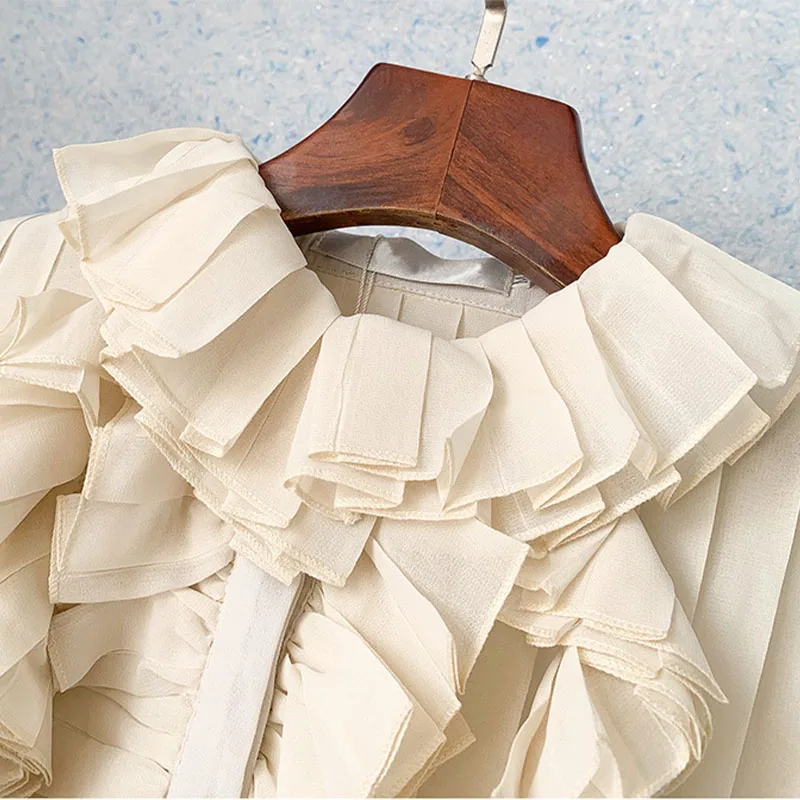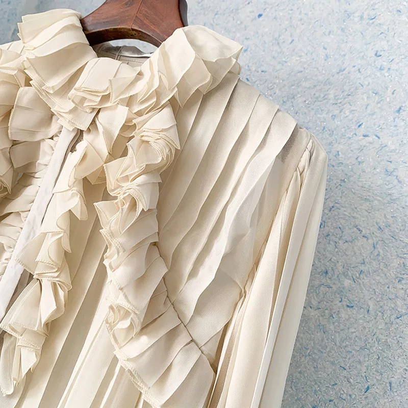 Корейская модная бежевая Повседневная двухслойная рубашка с воротником-стойкой, кружевные лоскутные блузки с оборками и рукавами-фонариками, топ-бренд