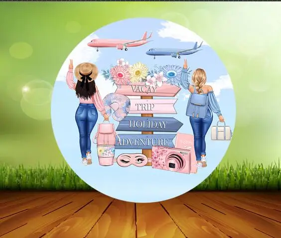 Круг круг с цветочным рисунком Let us Travel Girl, баннер для вечеринки в честь Дня рождения ребенка, банкетный столик, эластичный чехол 1021