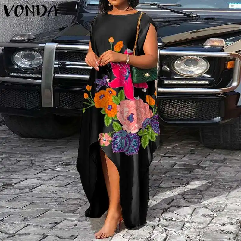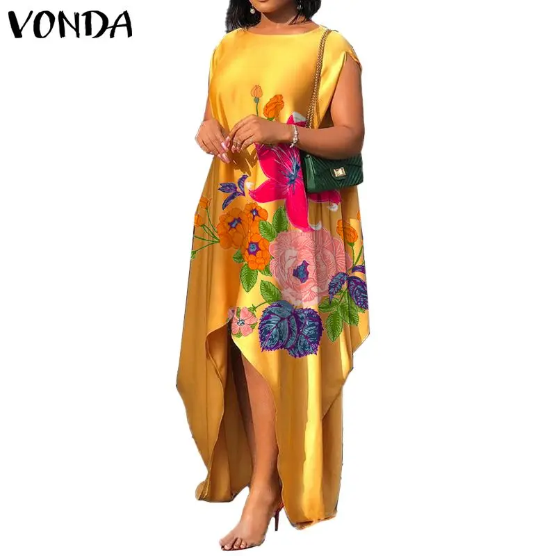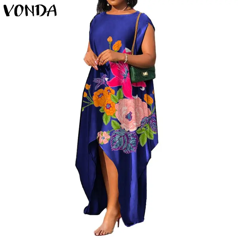 Летнее сексуальное платье-макси без рукавов с асимметричным подолом VONDA 2022, Женские винтажные праздничные Платья с цветочным принтом, богемные платья