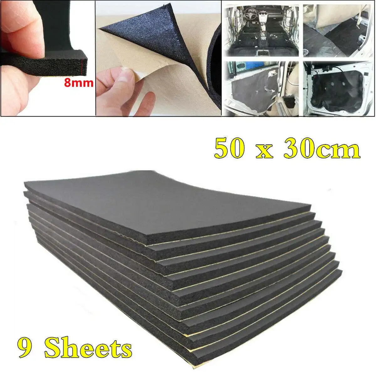 Самоклеящиеся автомобильные звукоизоляционные коврики из пеноматериала, 9 шт., 8 мм, 30 х50 см, изоляционная настенная акустическая амортизирующая пена