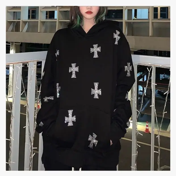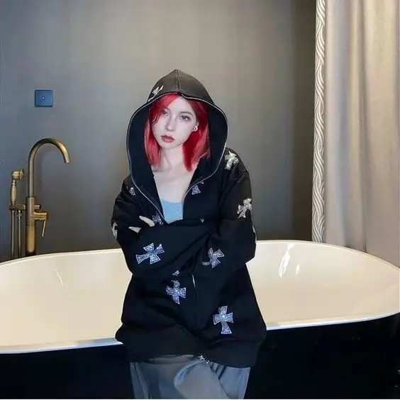 Стразы уличная одежда с длинным рукавом черная толстовка на молнии Y2k хип-хоп джоггеры Толстовка корейская мода панк спортивная куртка