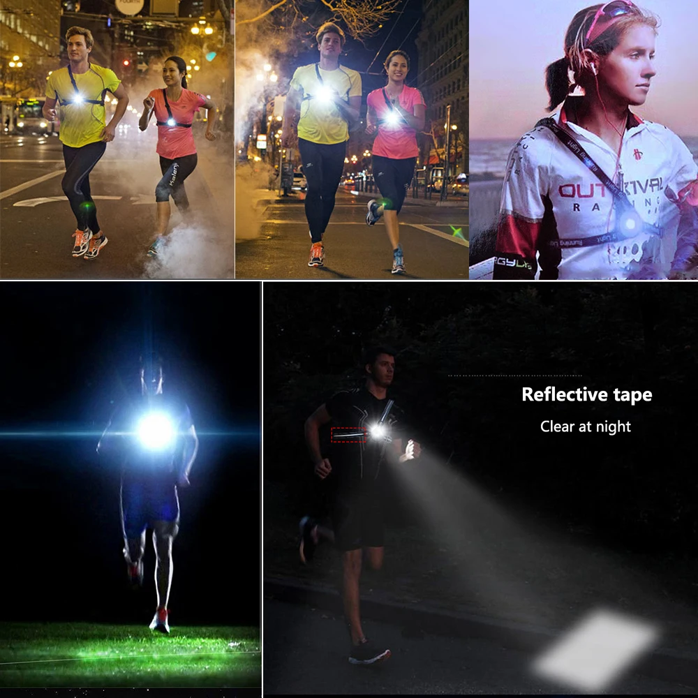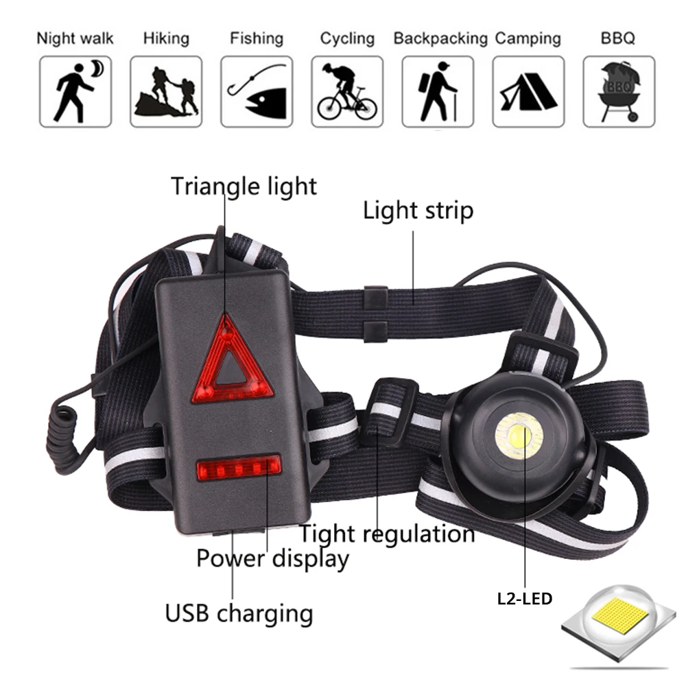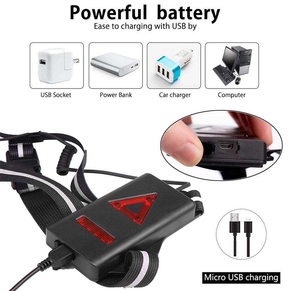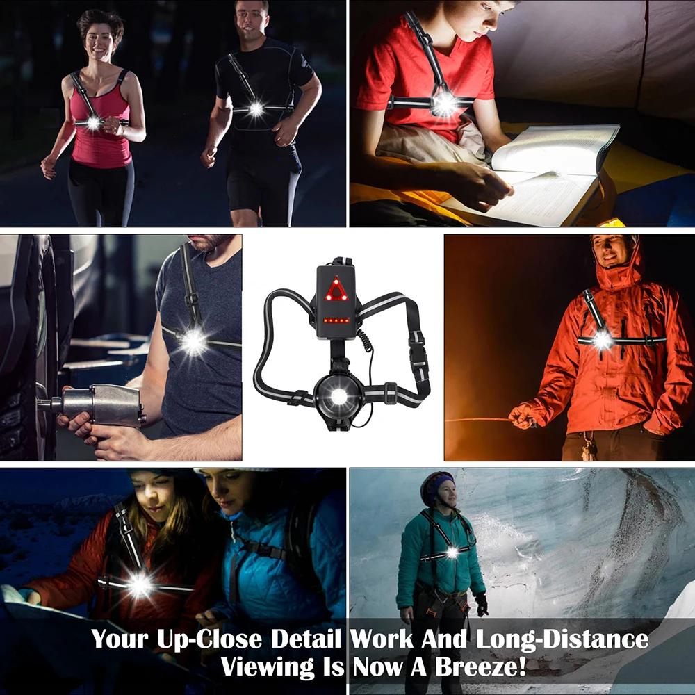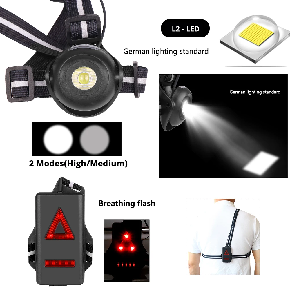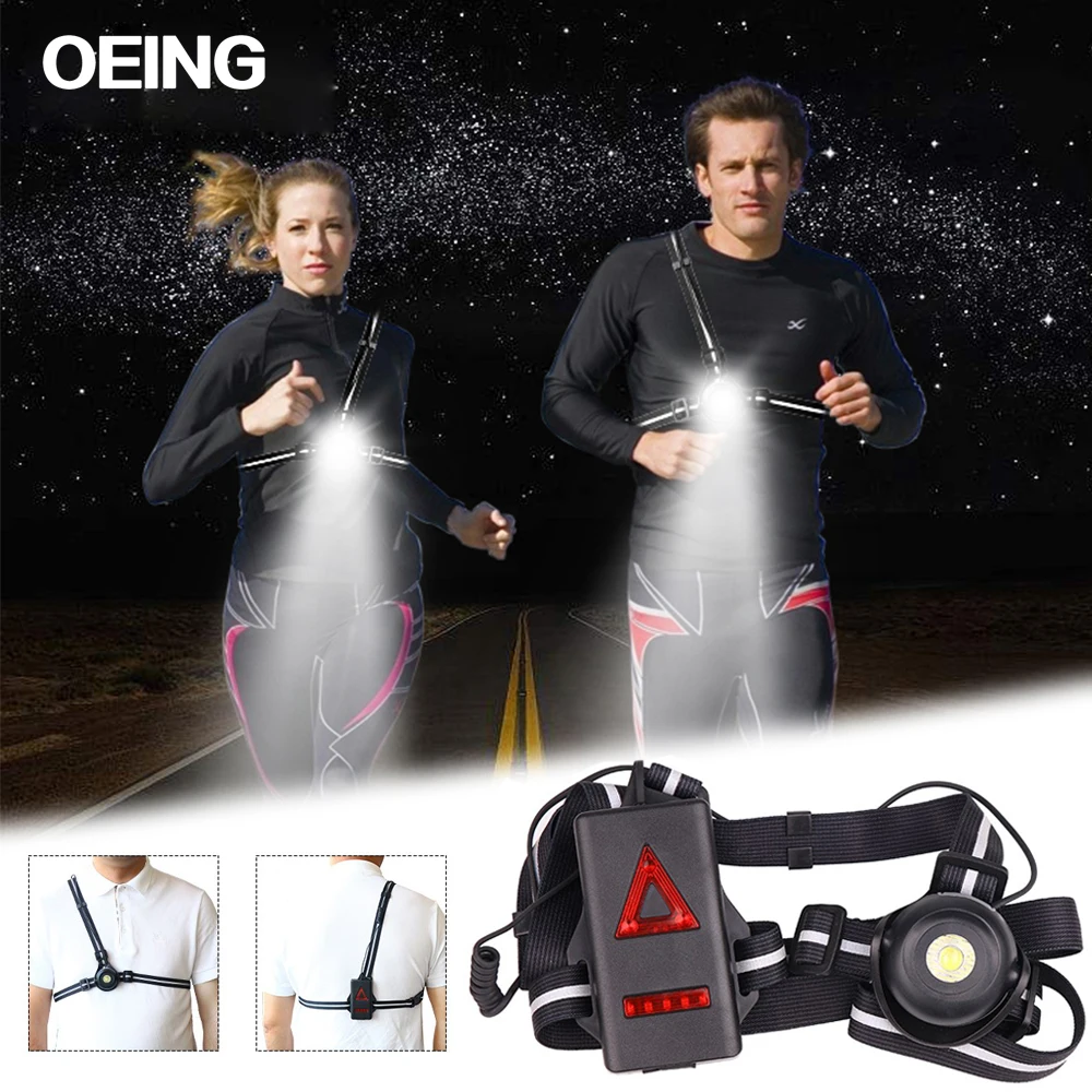 Ультраяркий портативный светодиодный нагрудный фонарь, зарядка через USB, 2 режима свечения, с красным задним фсветильник Рем, предупреждающая лампа, подходит для улицы