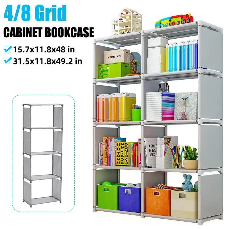 Описание:Шкаф для хранения 5 уровней Органайзер полка 4/8 шкаф книжный шкафКнижная полкаОсобенности товара:Тип: книжная полка для кубиковЦвет: серыйСтиль: простой и современныйУстановка: сборка