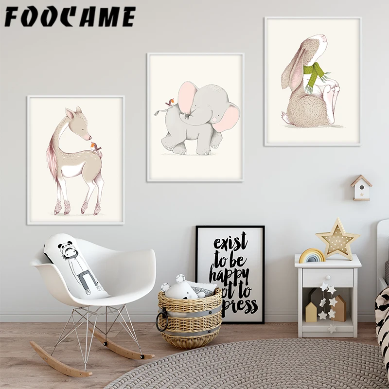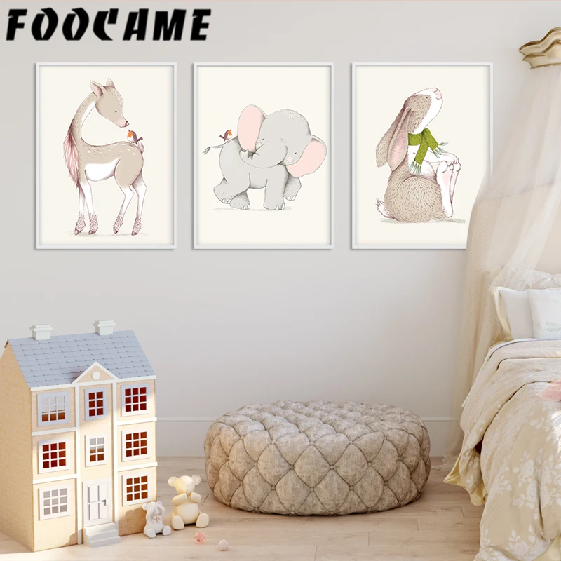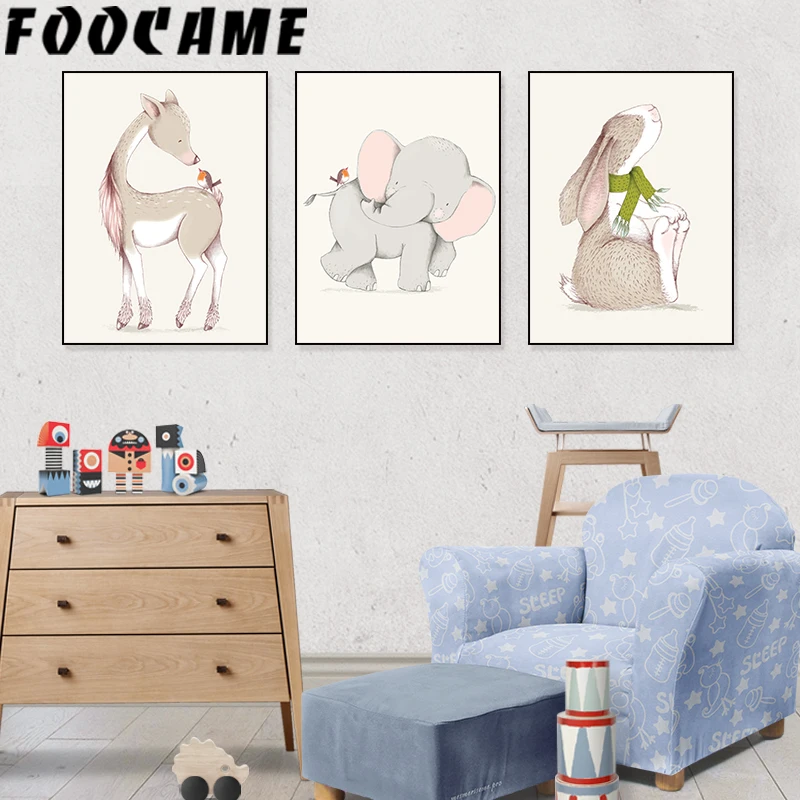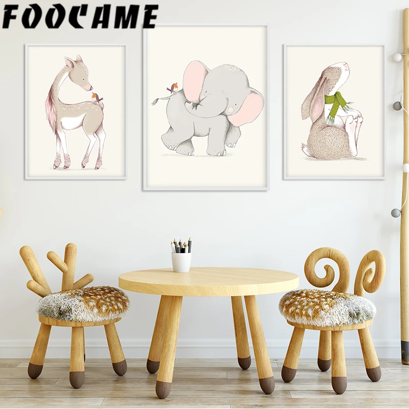 Олень, слон, кролик, мультфильм, аниме, постер, холст, картина, Детские принты, фотографии, Детская настенная живопись, украшение для детской комнаты