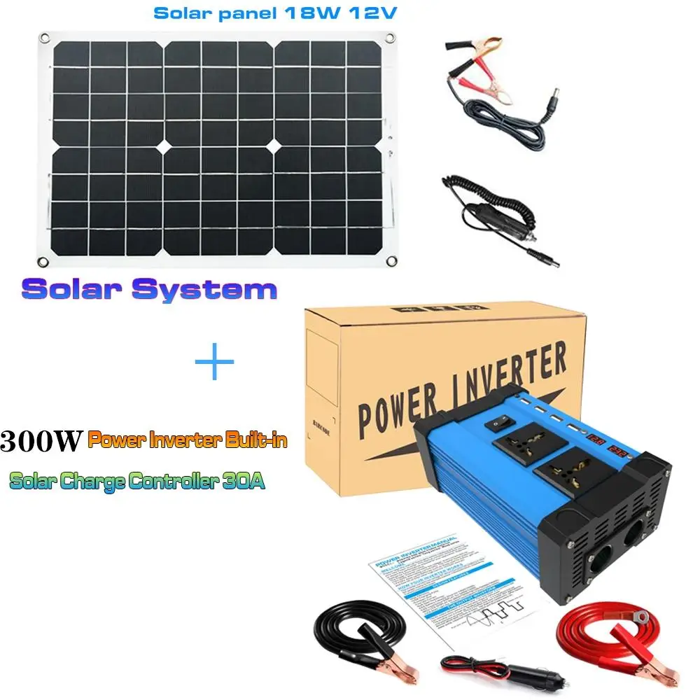 Система генерации солнечной энергии двойной USB 18 Вт солнечная панель + 600 Вт Инвертор 12 В до 220 В/110 В Встроенный контроллер заряда 30A 12 В с двумя портами USB зарядное устройство комплект солнечной системы