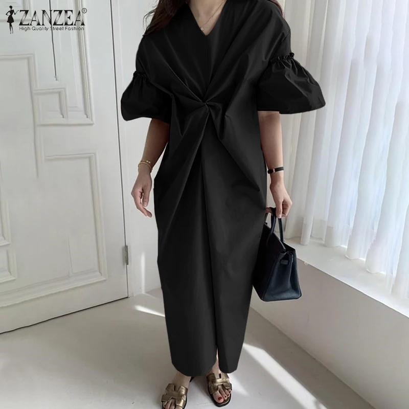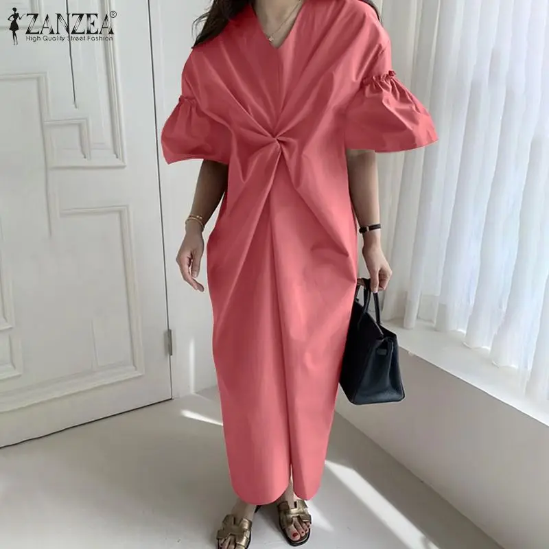 Элегантный женский летний сарафан 2021 ZANZEA, Повседневное платье-макси с расклешенным рукавом, женское праздничное платье с V-образным вырезом