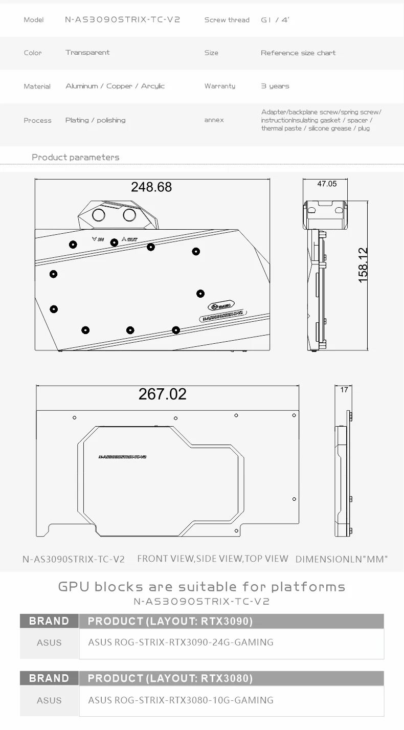 Bykski N-AS3090STRIX-TC-V2 GPU Блок водяного охлаждения с двойной а...